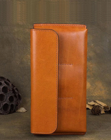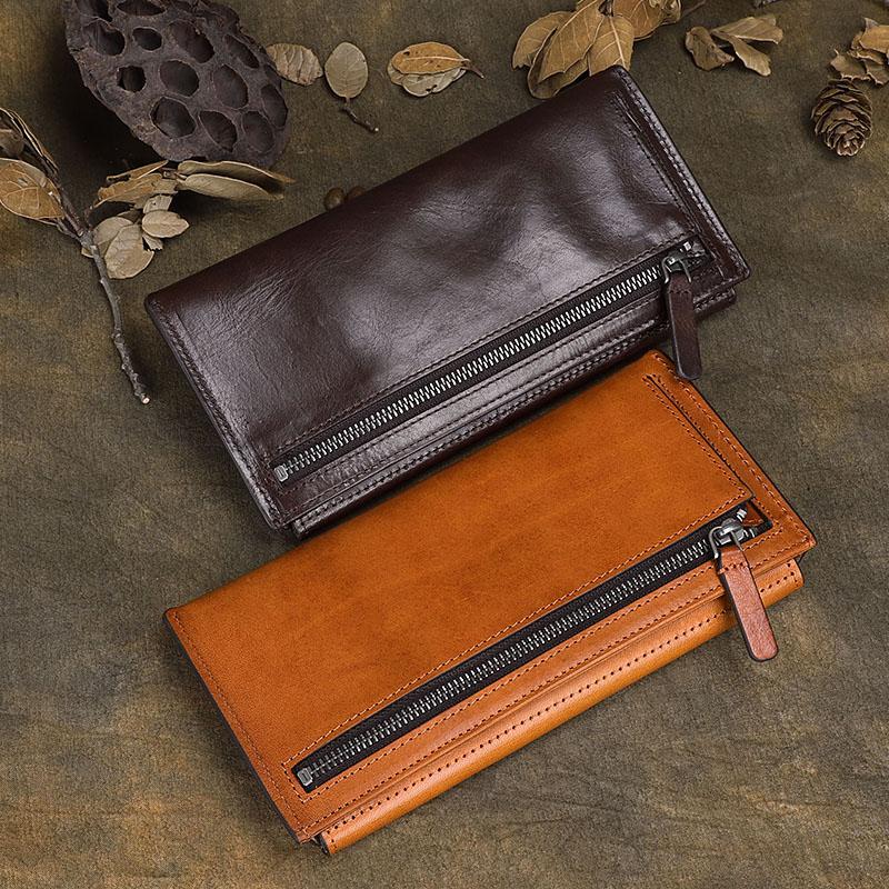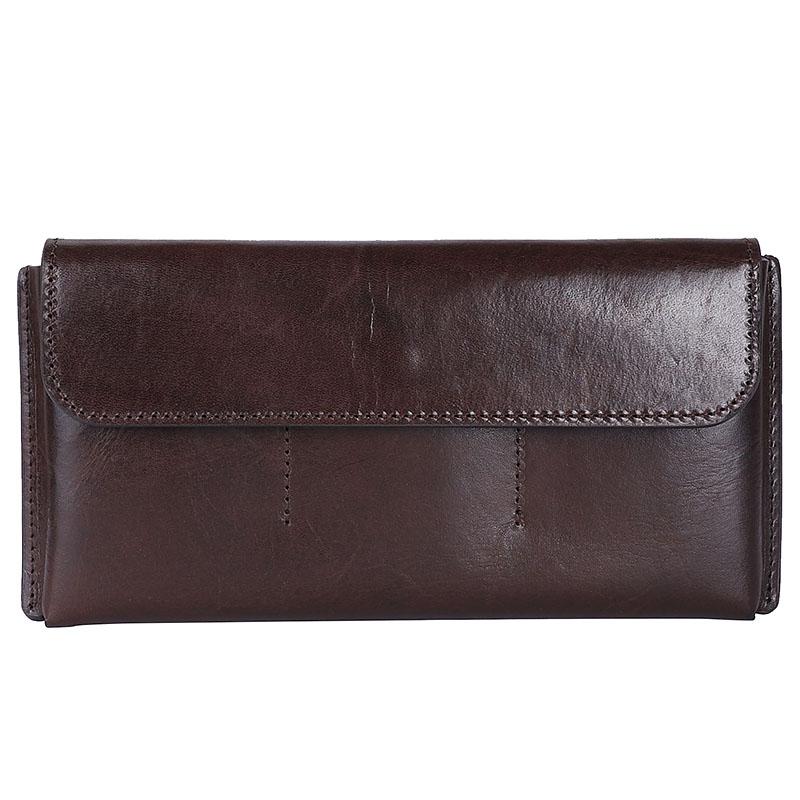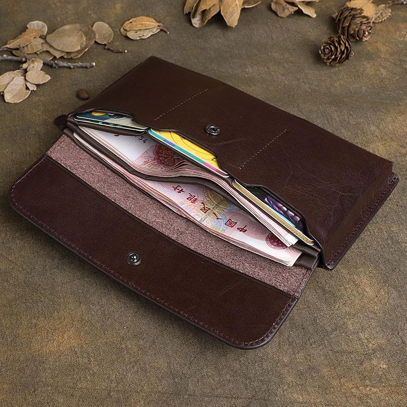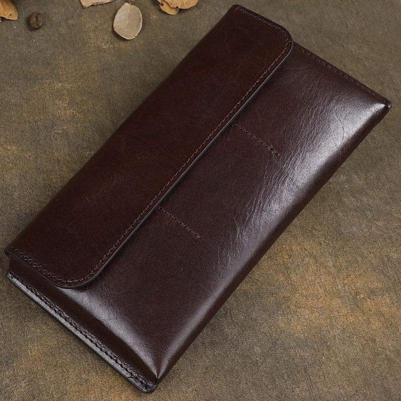 Design: Cool Brown Leather Mens Long Wallet Clutch Wallet Retro Dark Brown Clutch Bag for Men