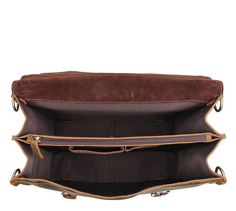 Design: Cool Brown Leather Men's Messenger Bag 16 inches Handbag Backpack Briefcase For Men