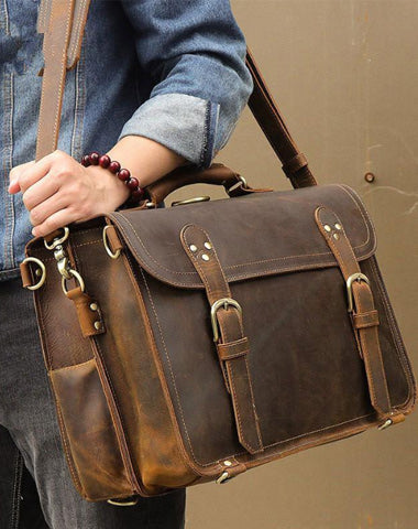 Style: Cool Brown Leather Men's Messenger Bag 16 inches Handbag Backpack Briefcase For Men
