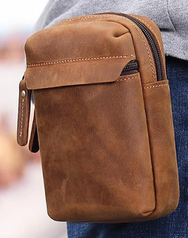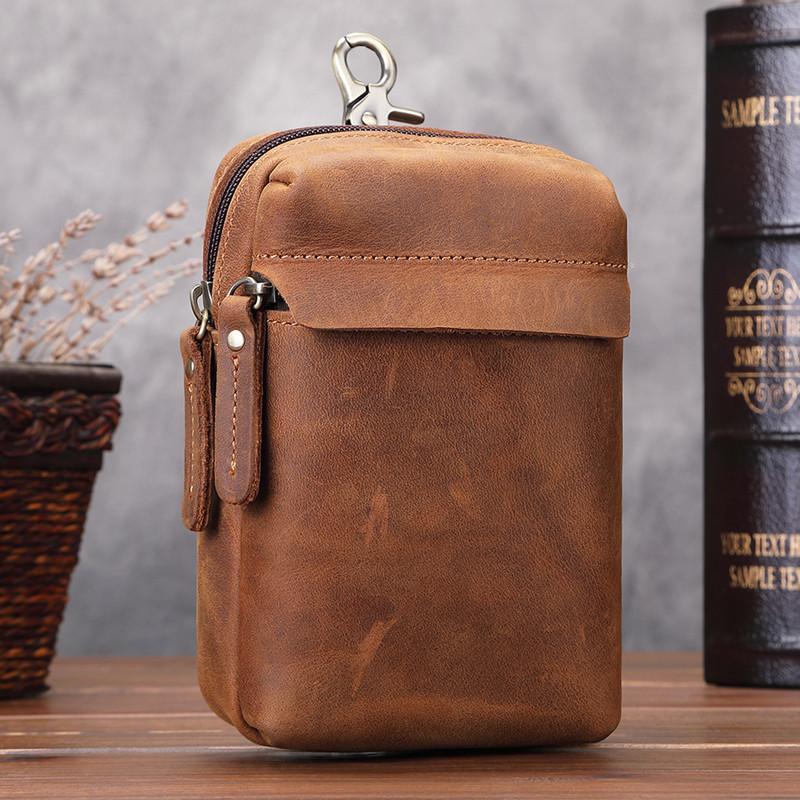 Design: Cool Brown Leather Men's Multifunction Cell Phone Holster Brown Belt Bag Belt Pouch For Men