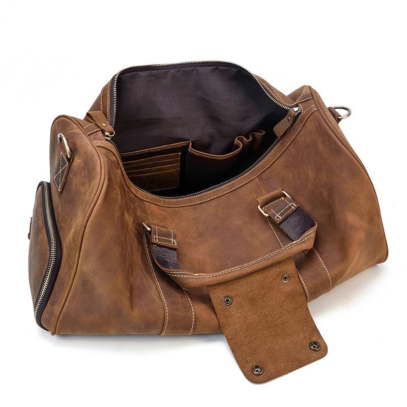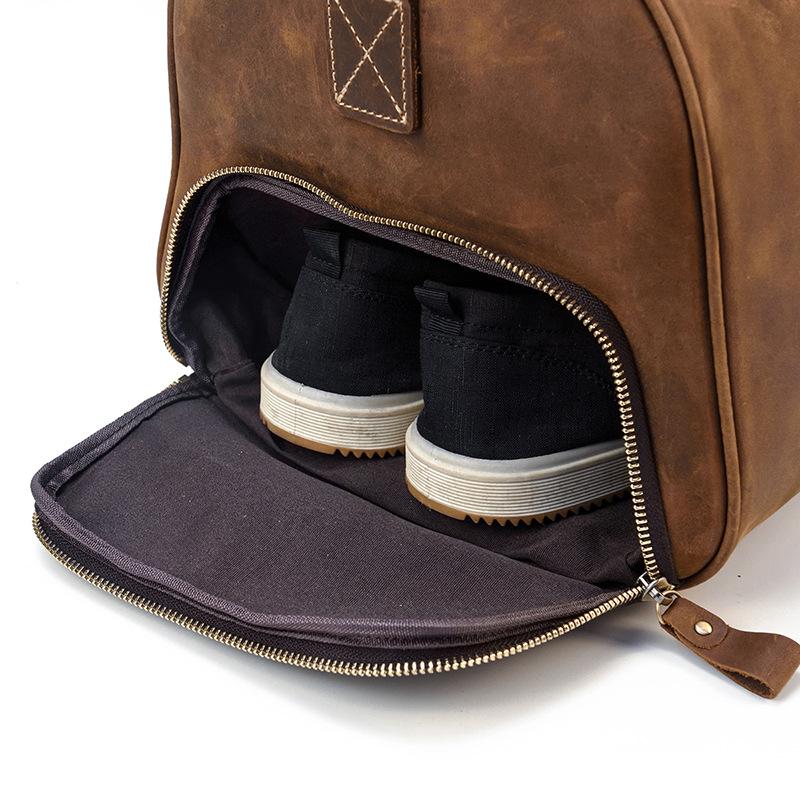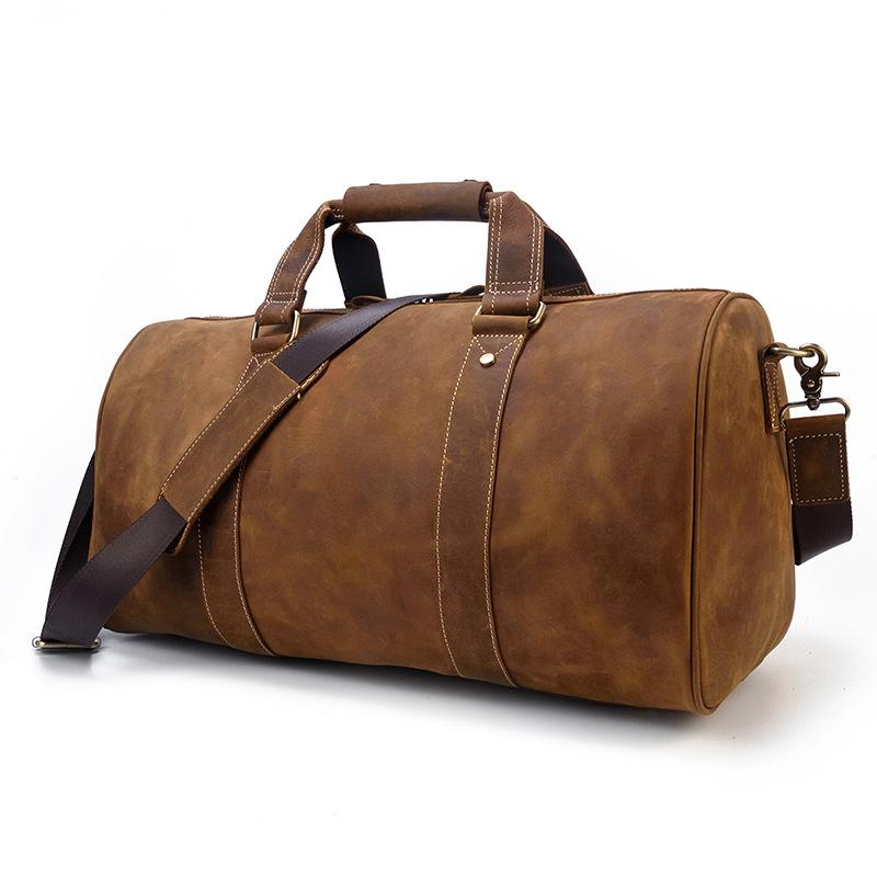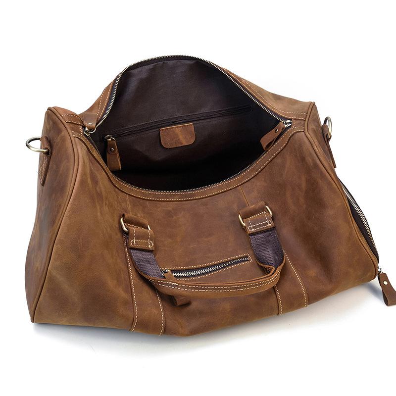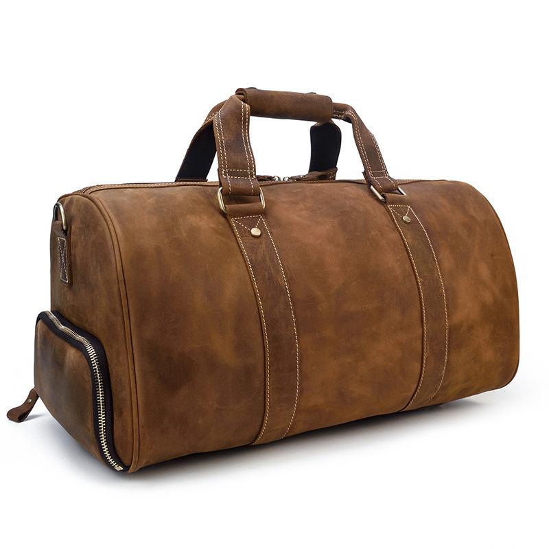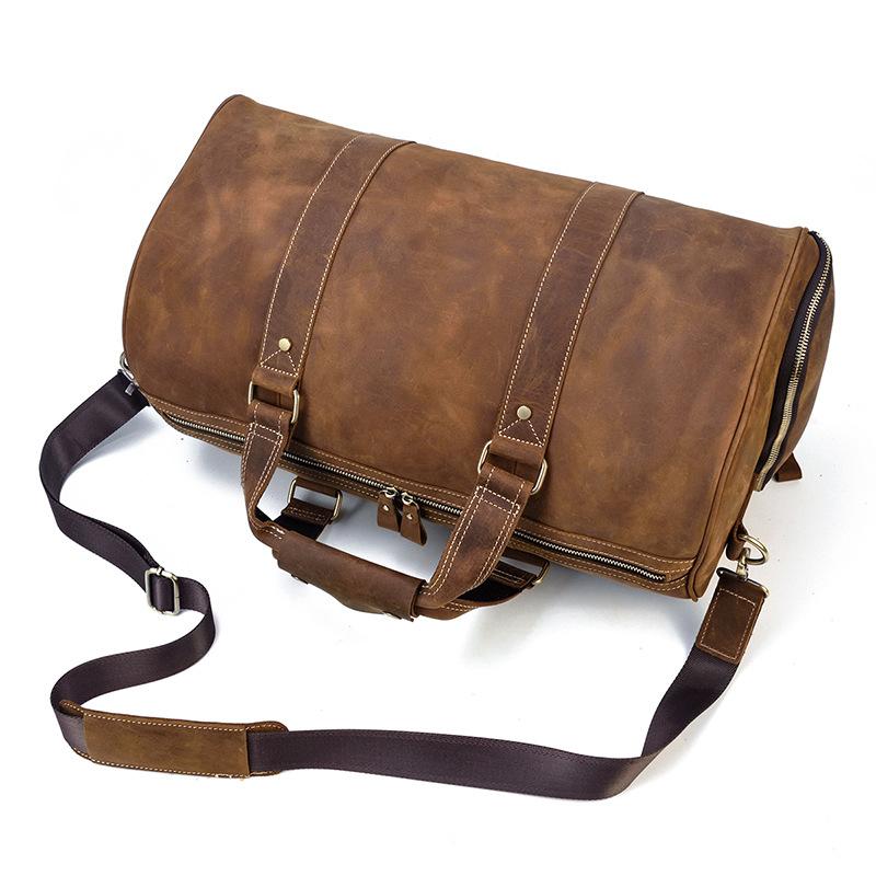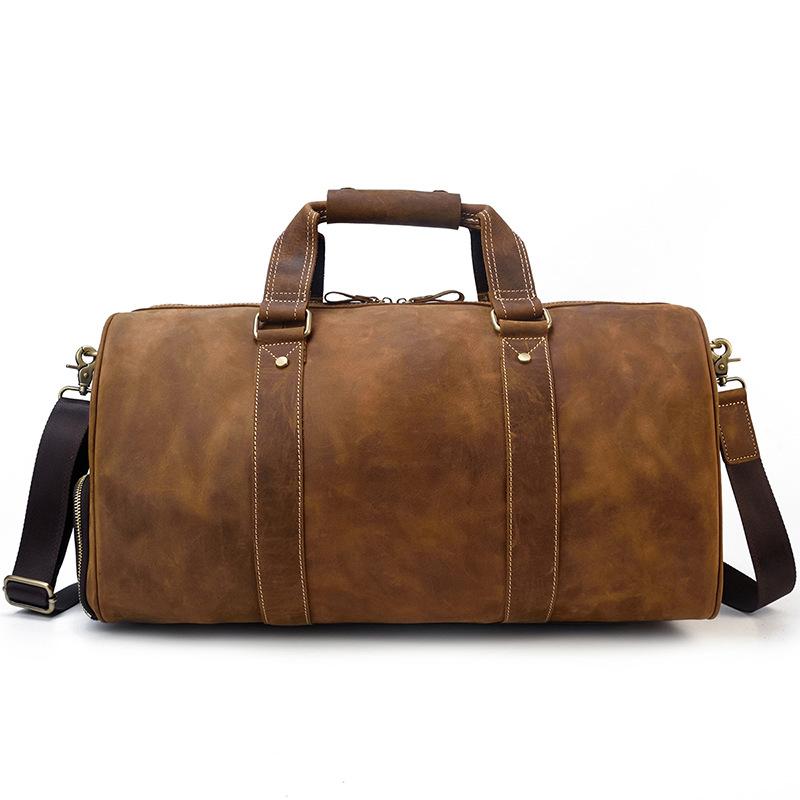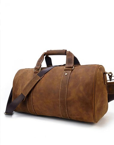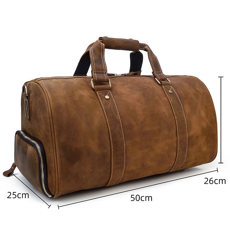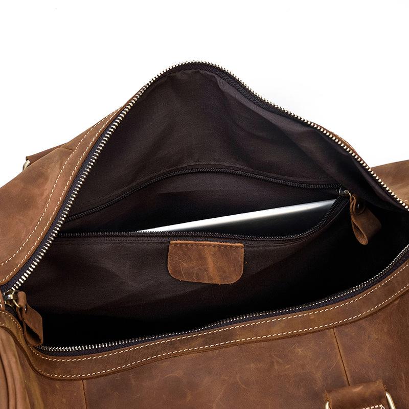 Design: Cool Brown Leather Men's Overnight Bag 14-inch Travel Bag Duffel Bag Weekender Bag For Men