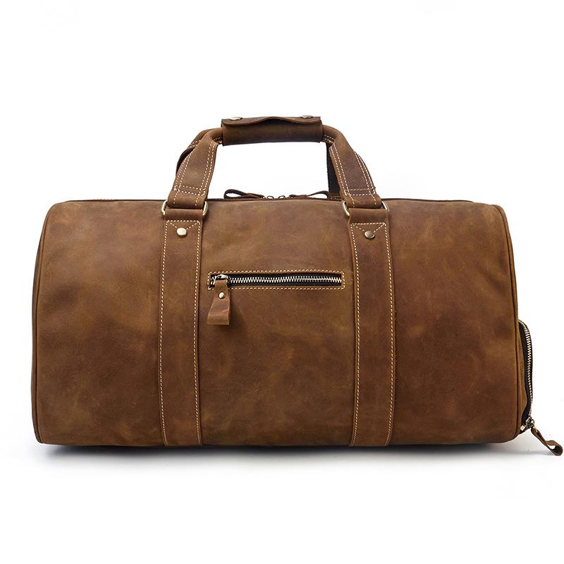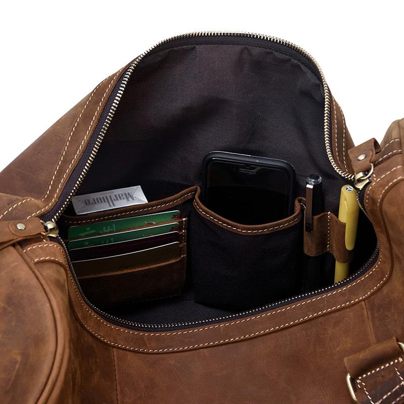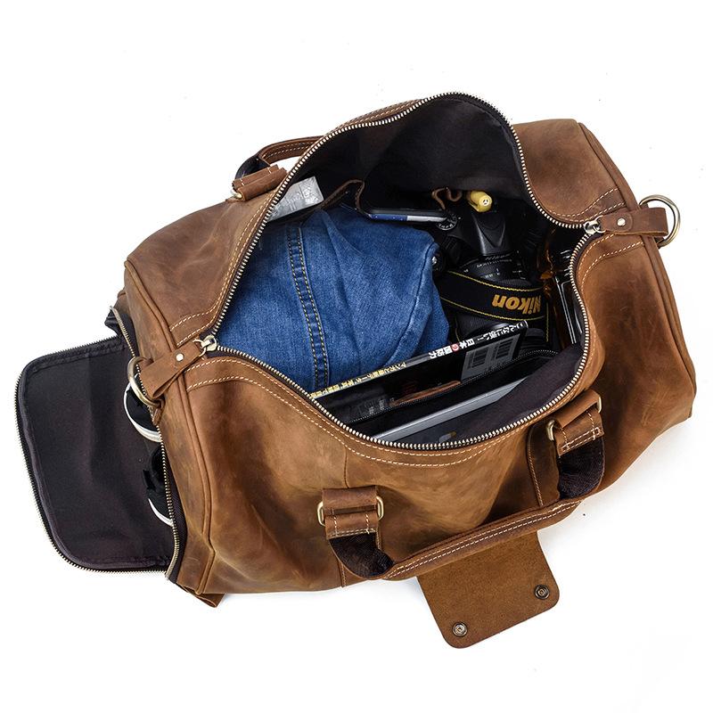 Design: Cool Brown Leather Men's Overnight Bag 14-inch Travel Bag Duffel Bag Weekender Bag For MenOverview: