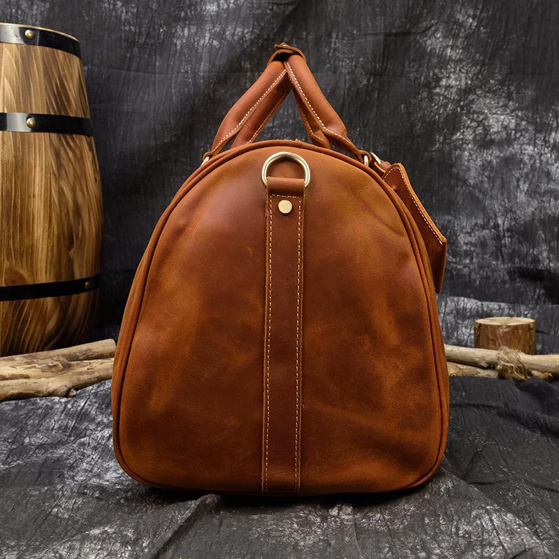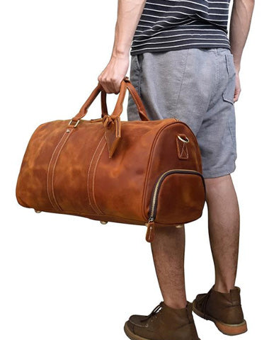 Design: Cool Brown Leather Mens Overnight Bag Duffle Bag Travel Bag Large Weekender Bag for Men