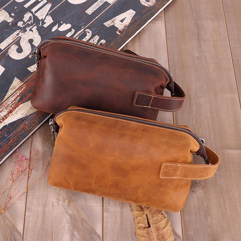 Style: Cool Brown Leather Men's Red Brown Storage Bag Clutch Bag Portable Bag Mini Handbag for Men