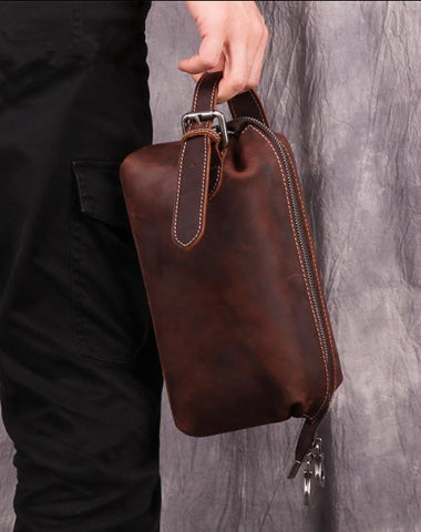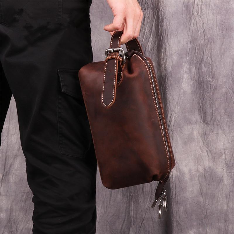 Design: Cool Brown Leather Men's Red Brown Storage Bag Clutch Bag Portable Bag Mini Handbag for Men