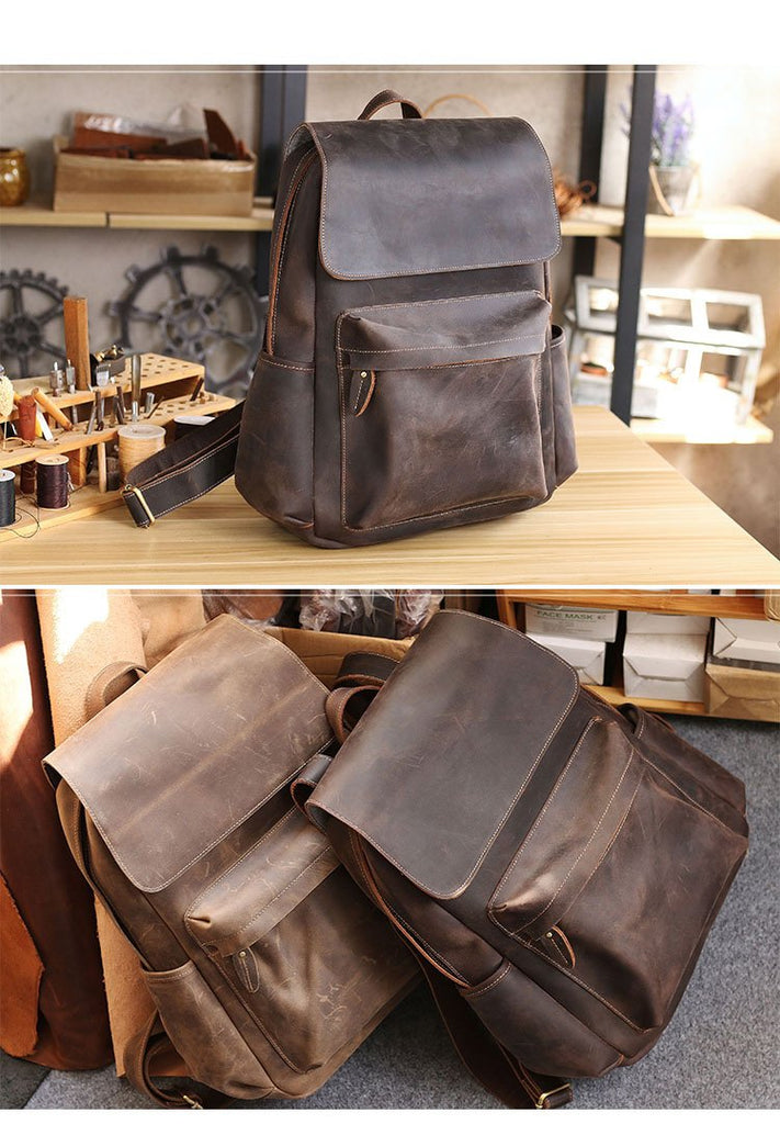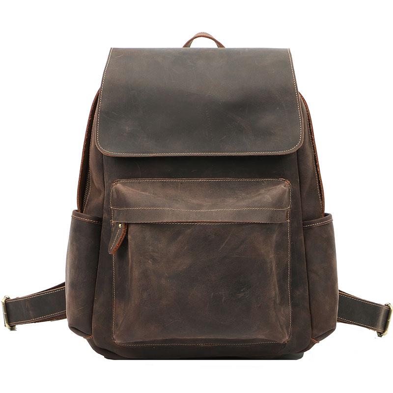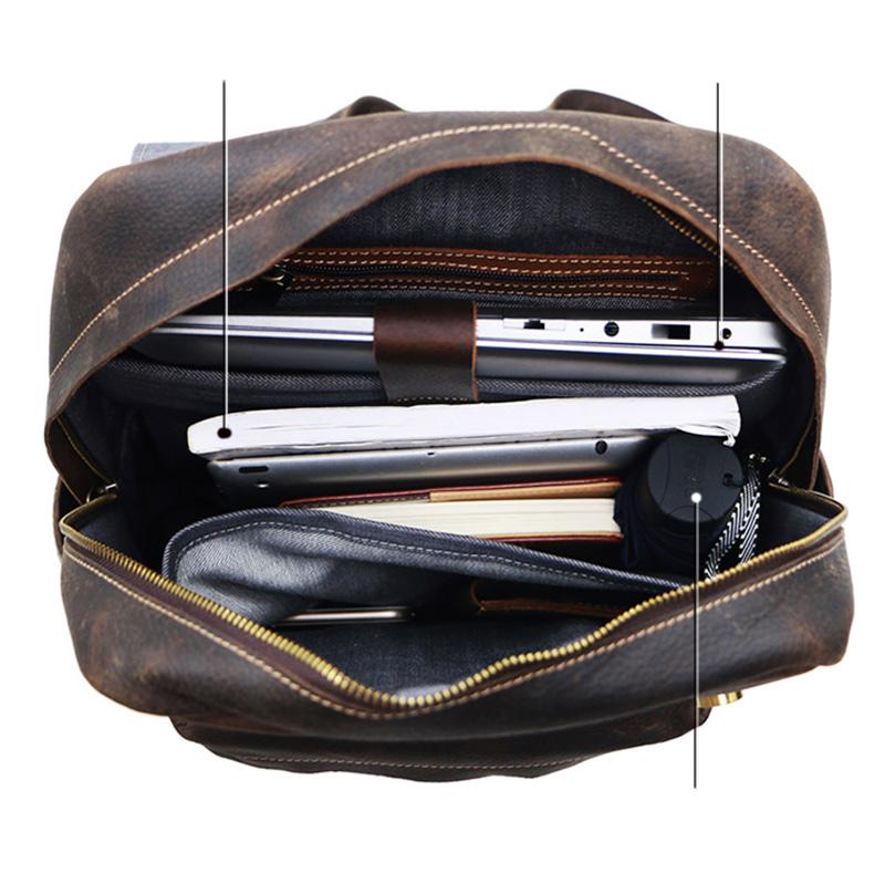 Style: Cool Brown Leather Mens Travel Backpack Work Handbag Briefcase Work Backpack For Men