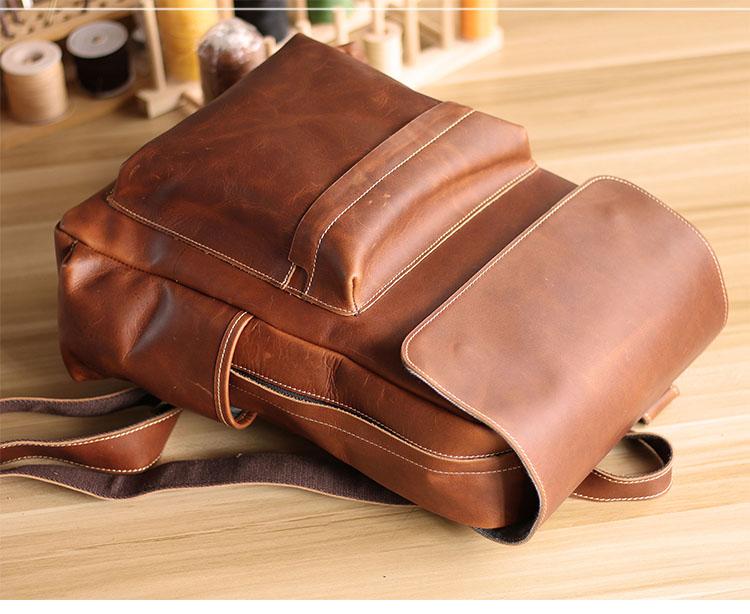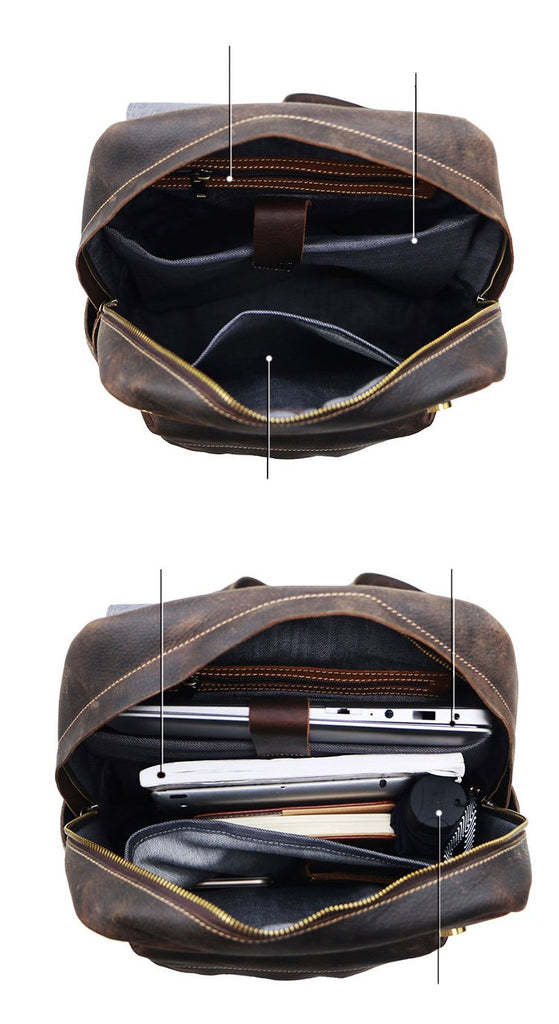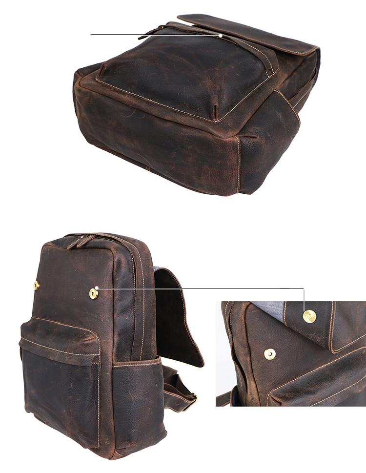 Design: Cool Brown Leather Mens Travel Backpack Work Handbag Briefcase Work Backpack For Men