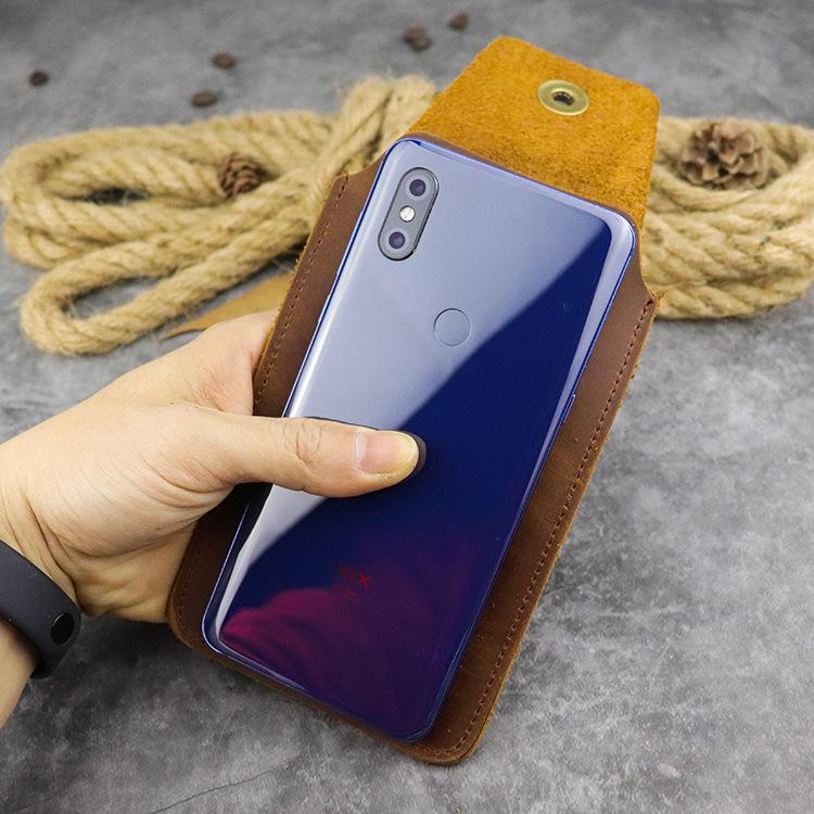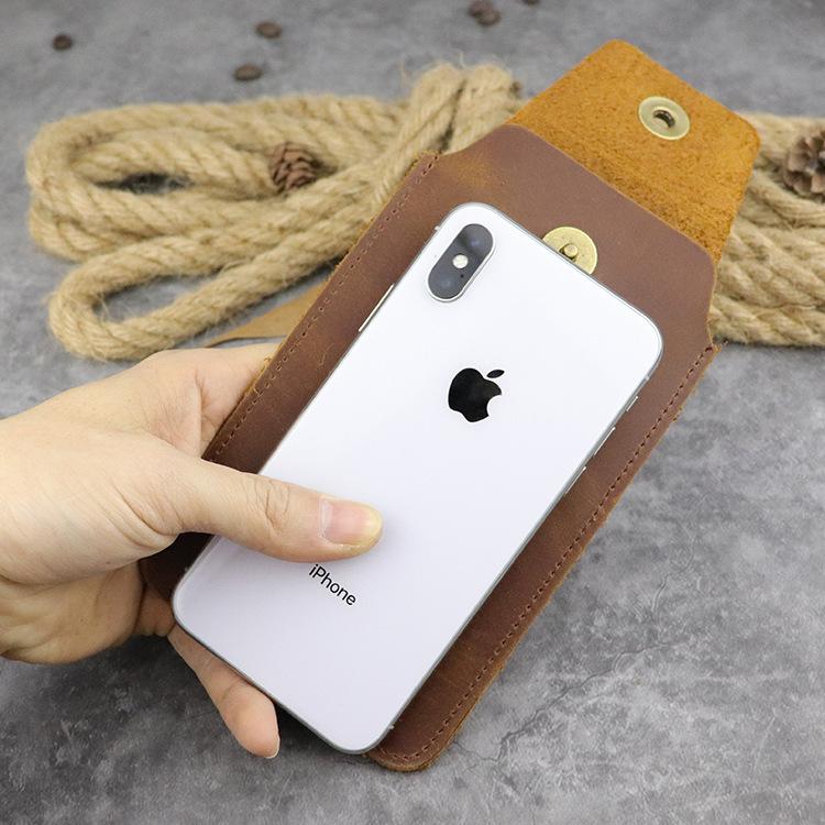Design: Cool Brown Leather Men's Ultra Thin Cell Phone Holster Dark Brown Belt Bag Belt Pouch For MenOverview: