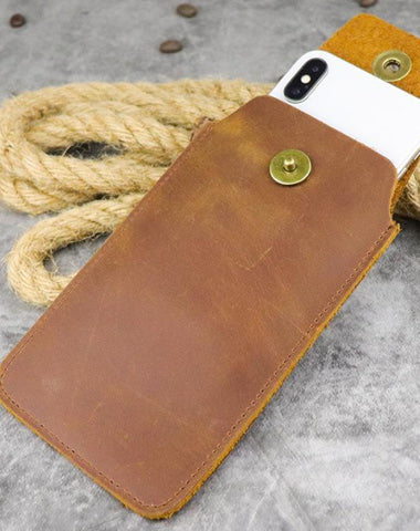 Design: Cool Brown Leather Men's Ultra Thin Cell Phone Holster Dark Brown Belt Bag Belt Pouch For Men