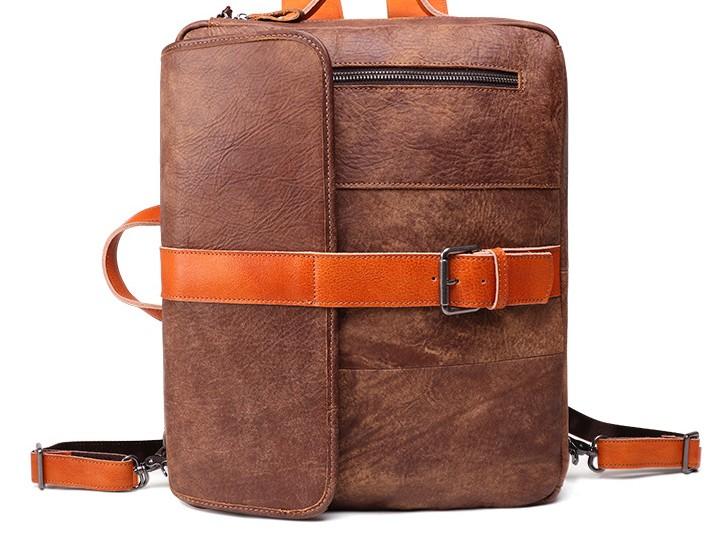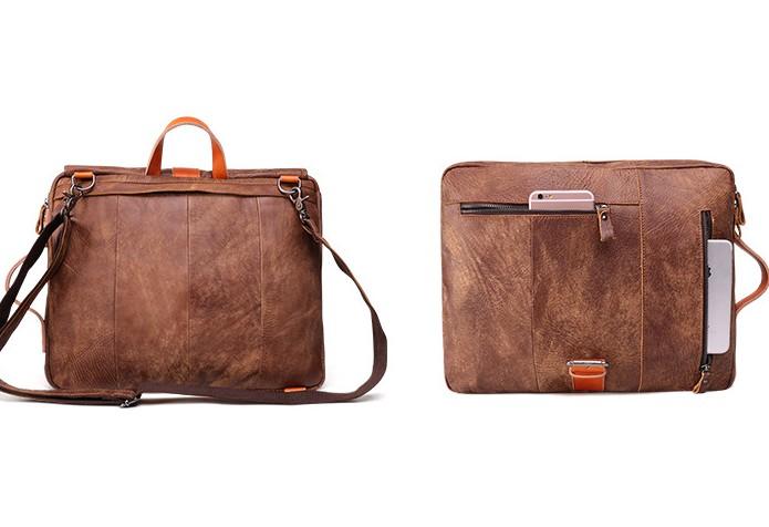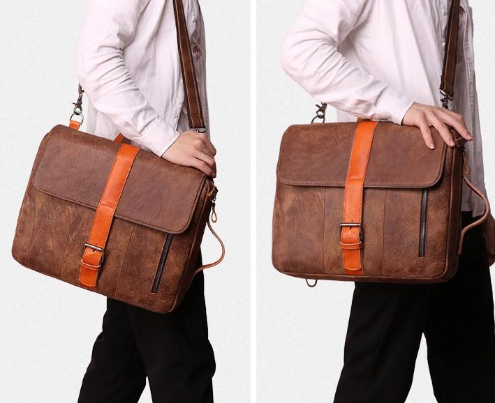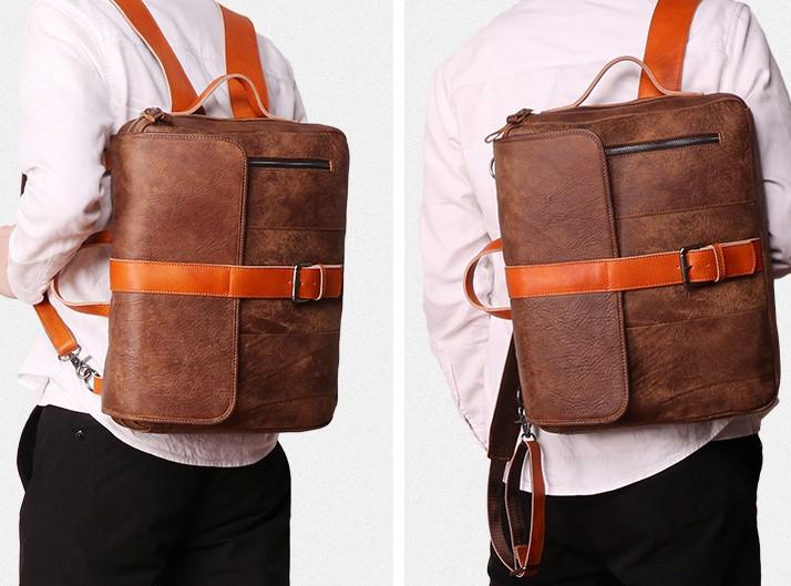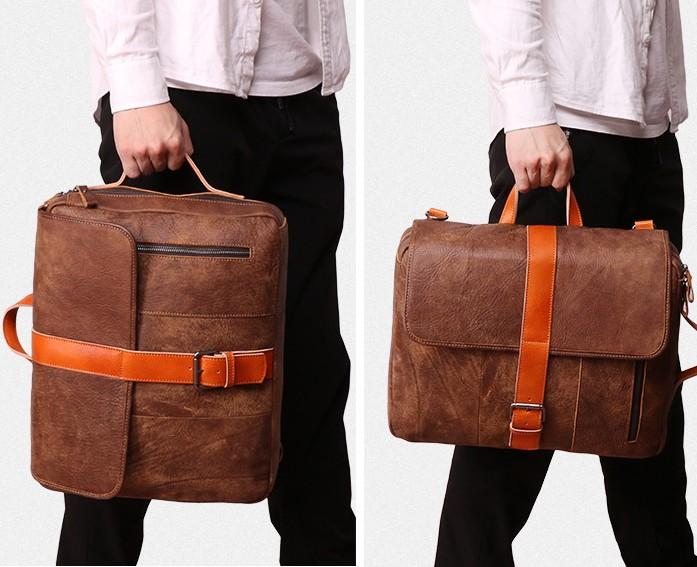 Design: Brown Leather Messenger Bag Handbag Shoulder Bag Backpack For Men