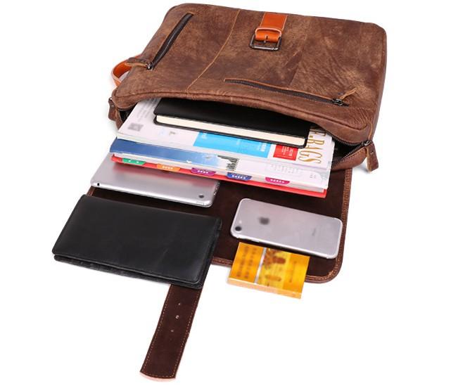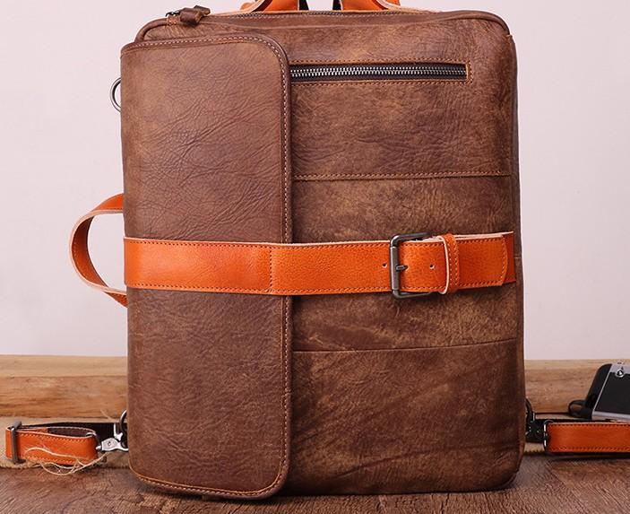 Design: Brown Leather Messenger Bag Handbag Shoulder Bag Backpack For MenOverview:
