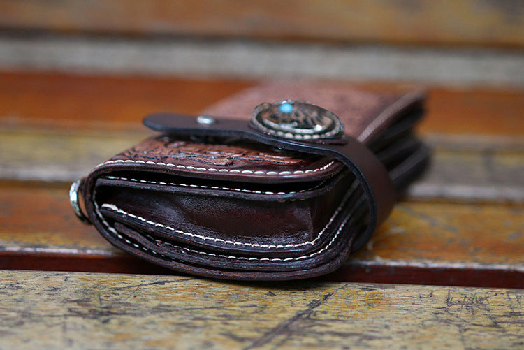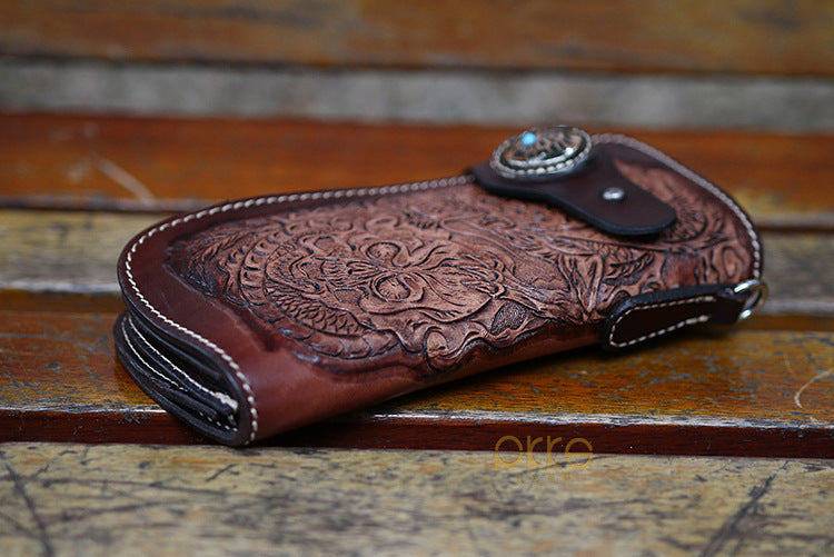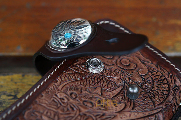 Design: Cool Leather Tooled Dragon&Skull Biker Wallet Handmade Biker Chain Wallet for Men