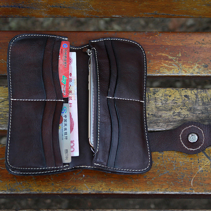 Style: Cool Leather Tooled Dragon&Skull Biker Wallet Handmade Biker Chain Wallet for Men