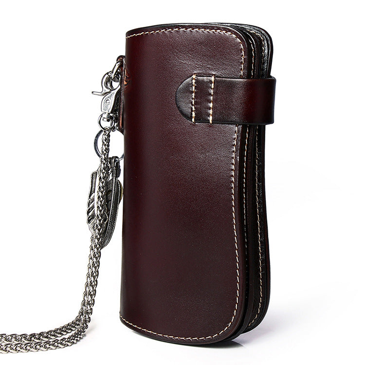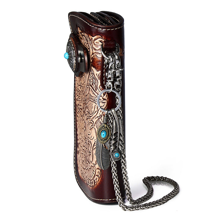 Style: Cool Leather Tooled Dragon&Skull Biker Wallet Handmade Biker Chain Wallet for Men