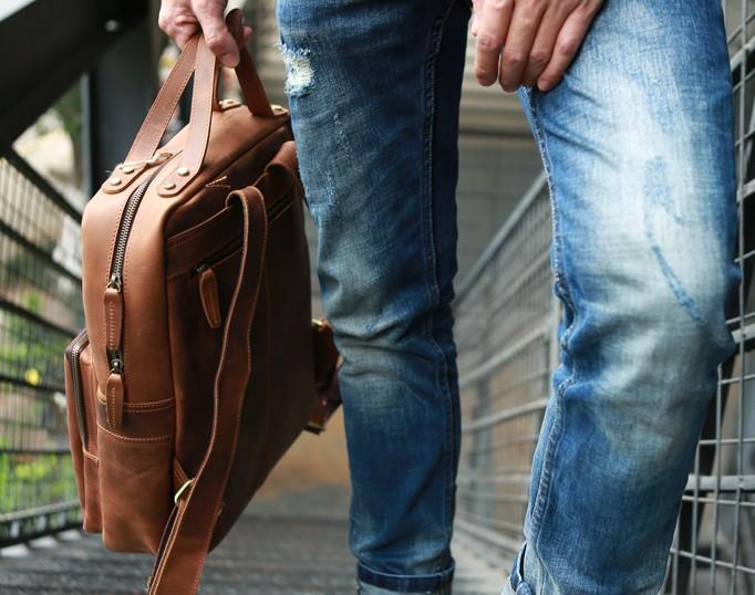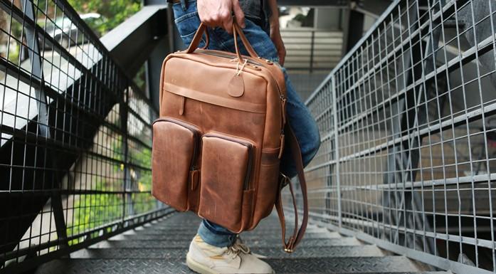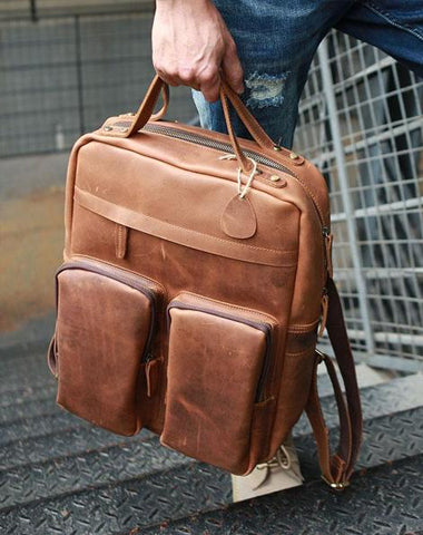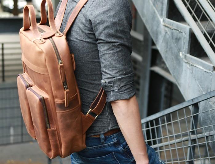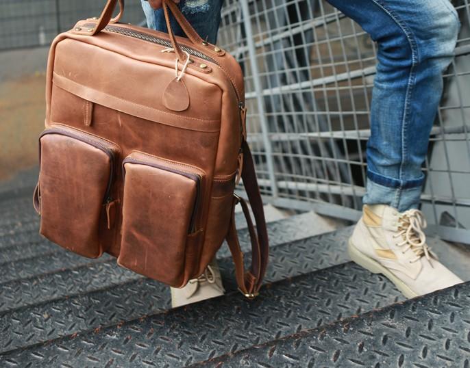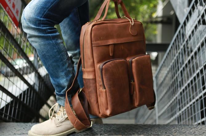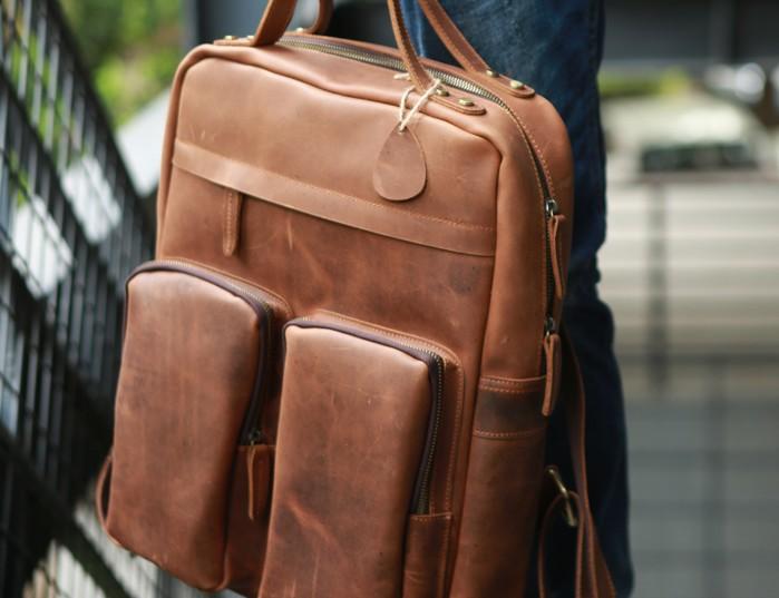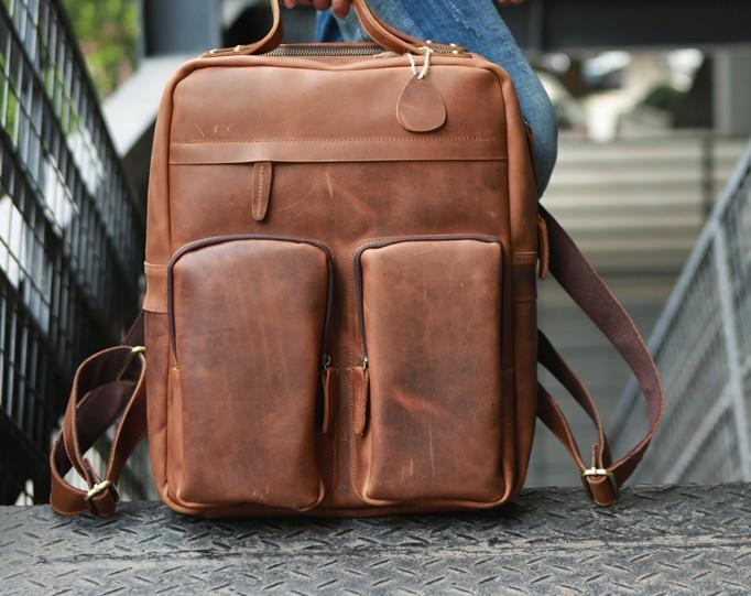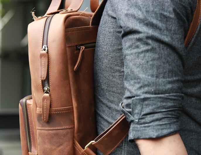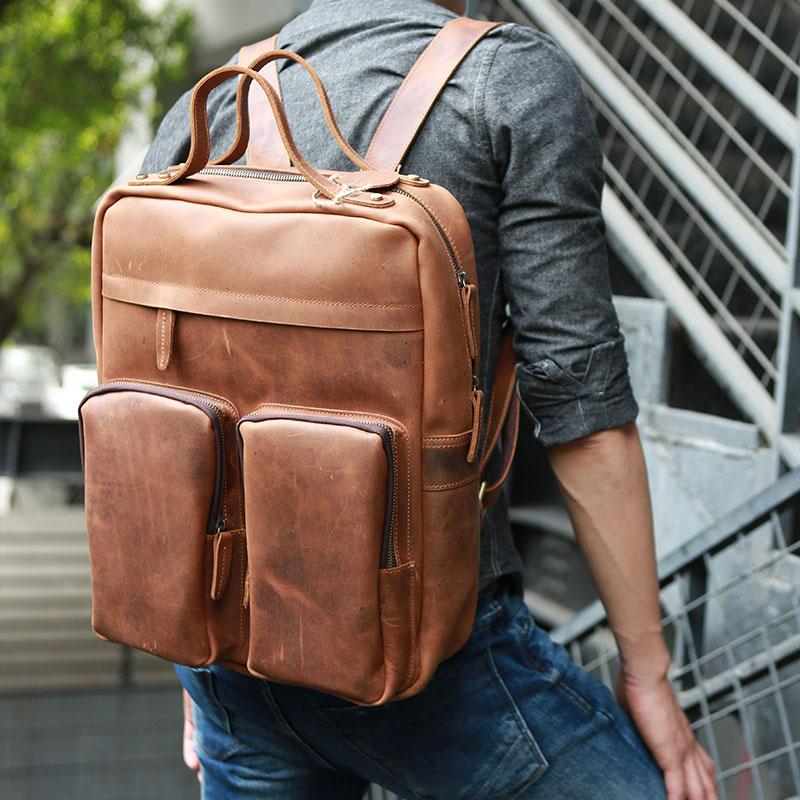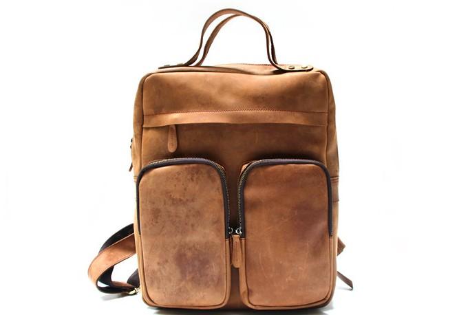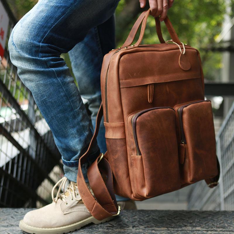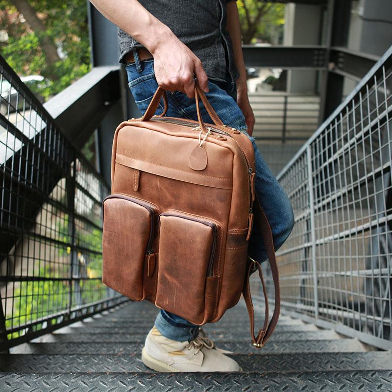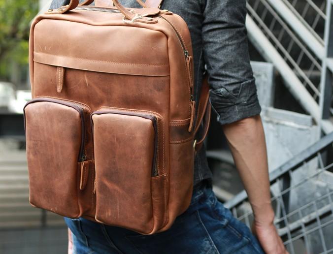 Design: Cool Brown Mens Leather Backpack Travel Backpacks Laptop Backpack for men