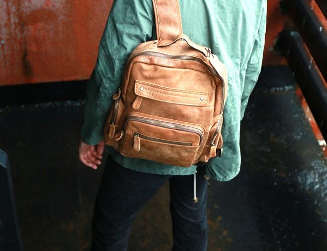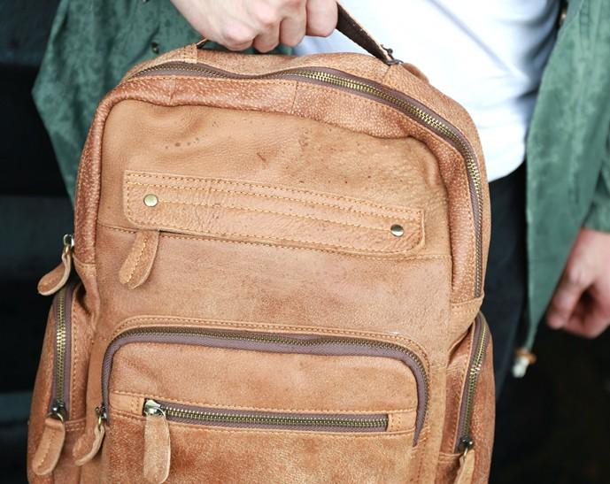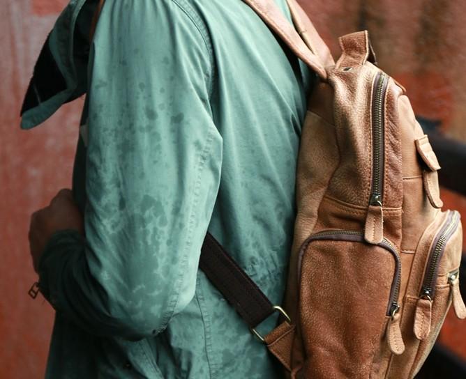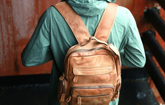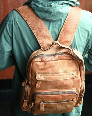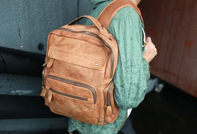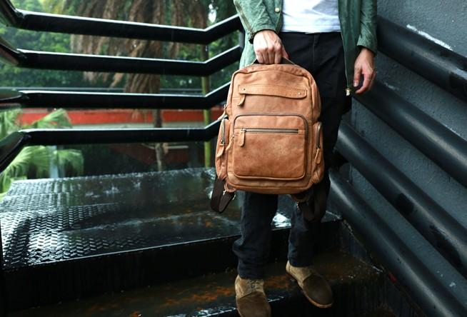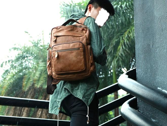 Style: Cool Brown Mens Leather Backpack Travel Backpacks School Backpacks for men