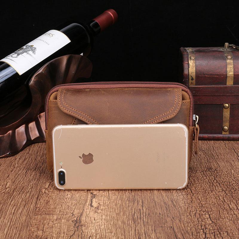 Style: Cool Brown Mens Leather Belt Bag Belt Pouch Cell Phone Holster Waist Bags For Men