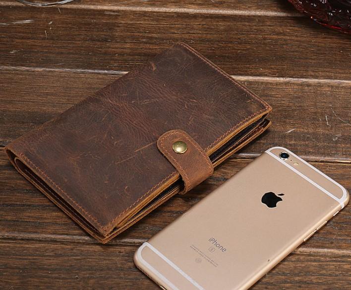Design: Cool Brown Mens Leather Long Wallet Bifold Long Wallet for Men