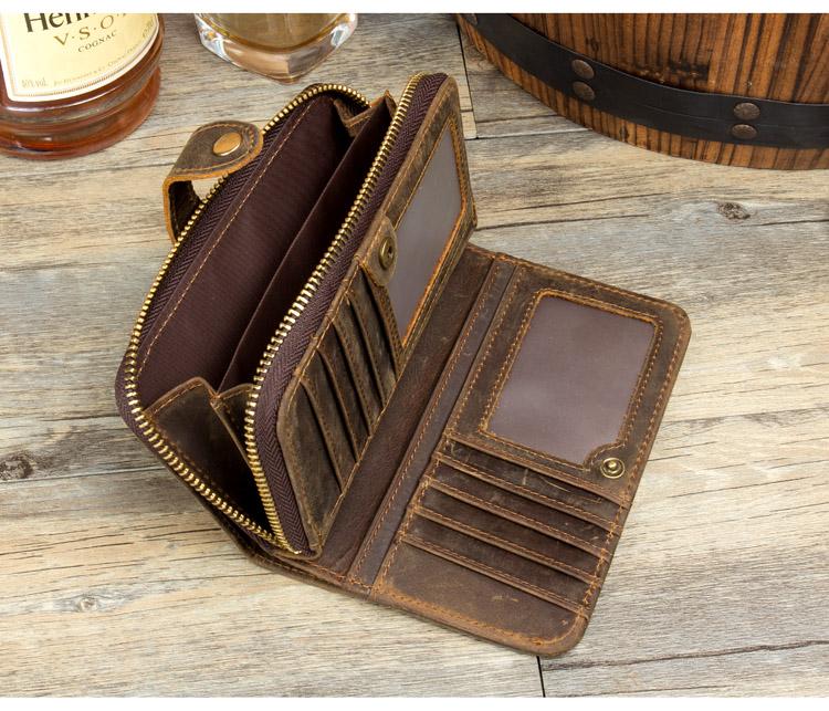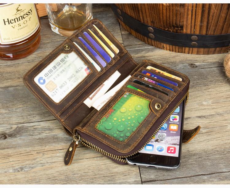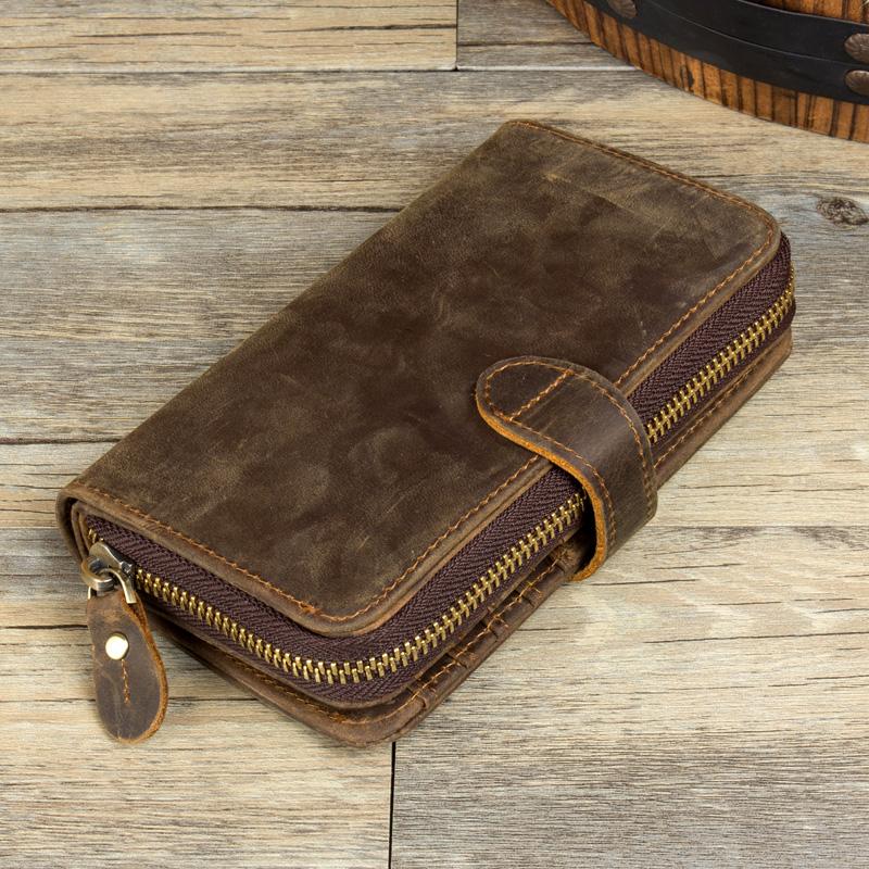 Design: Brown Cool Mens long Wallet Wristlet Bag Clutch Bag Mobile Bags for Men
