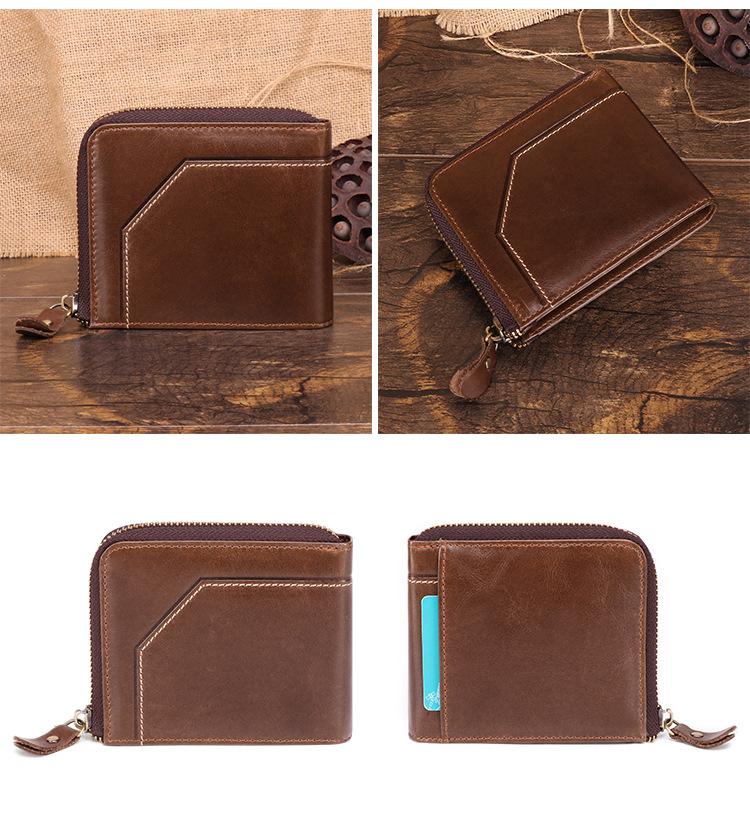 Design: Dark Brown Small MENS LEATHER Brown Trifold Wallet SLIM ZIPPER CLUTCH WRISTLET Brown Wallet FOR MEN