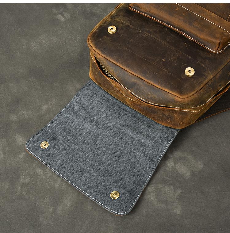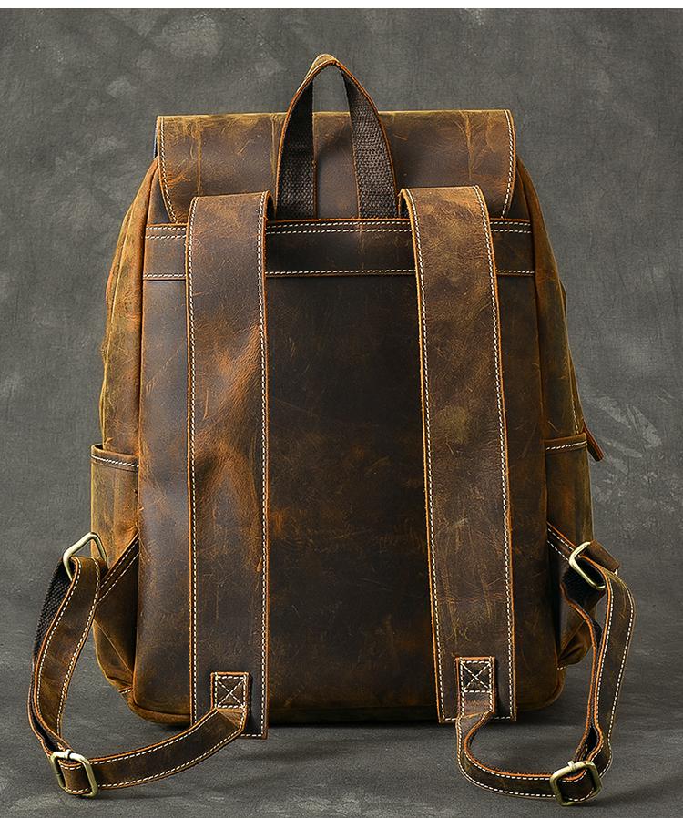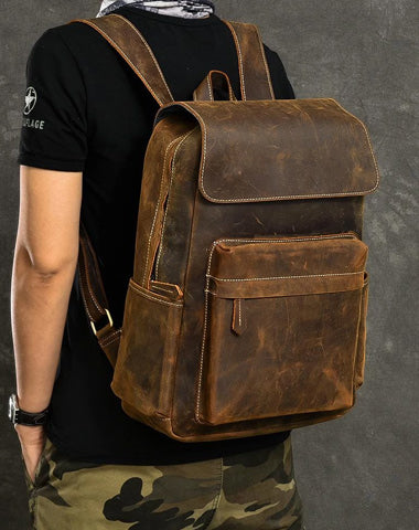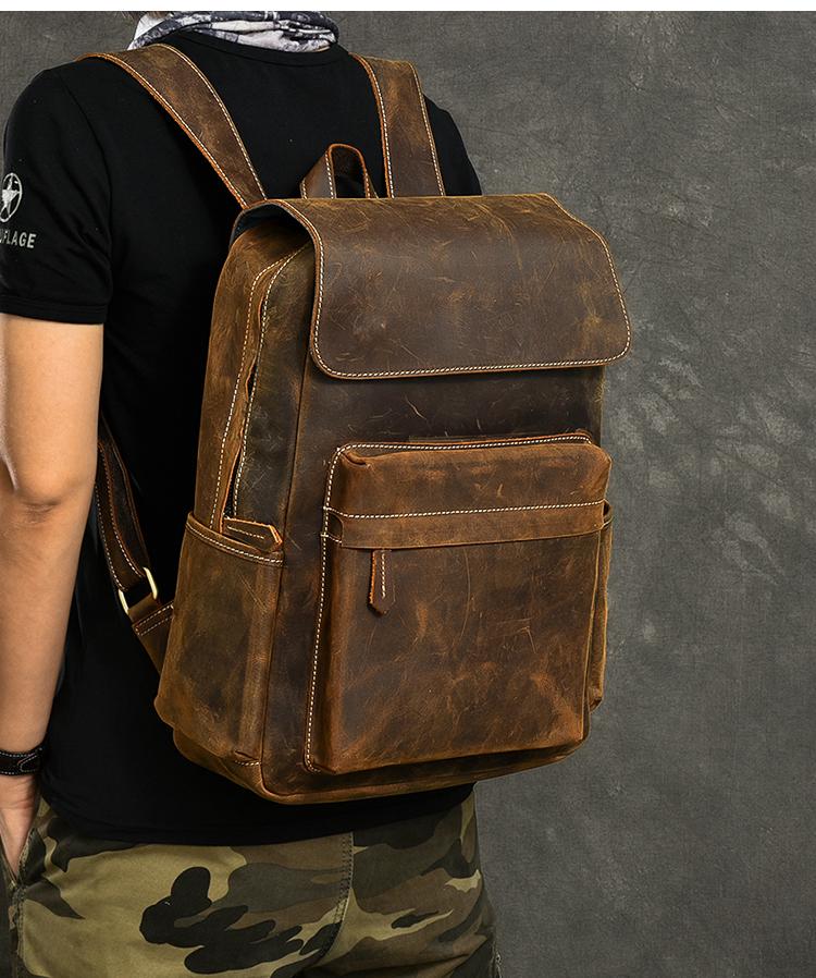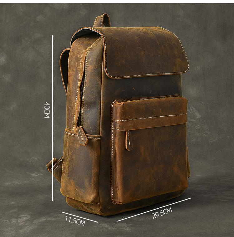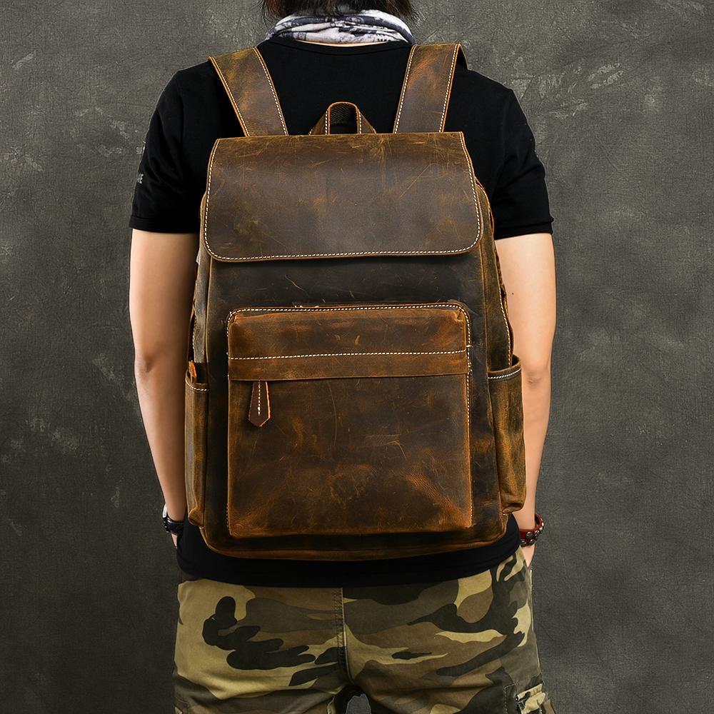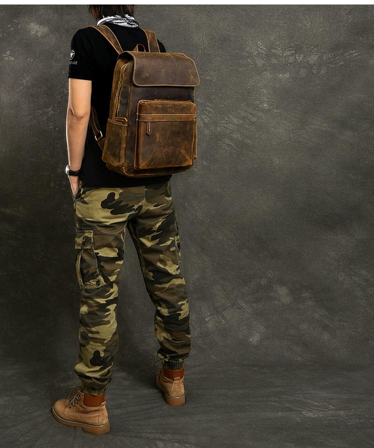 Design: Cool Canvas Leather Mens 14" Retro Brown Hiking Backpack Travel Backpack College Backpack for Men