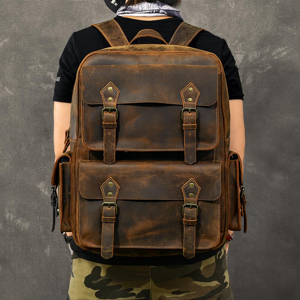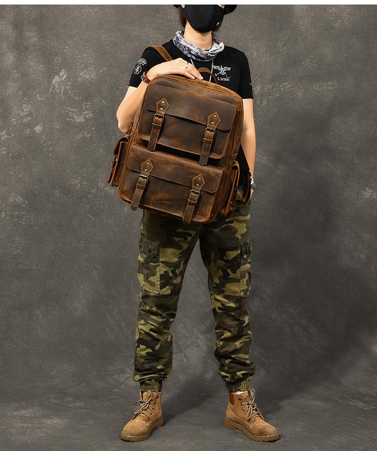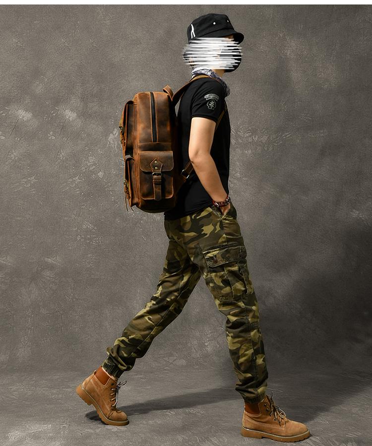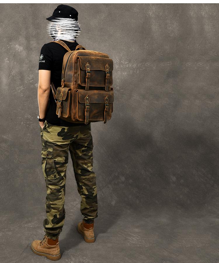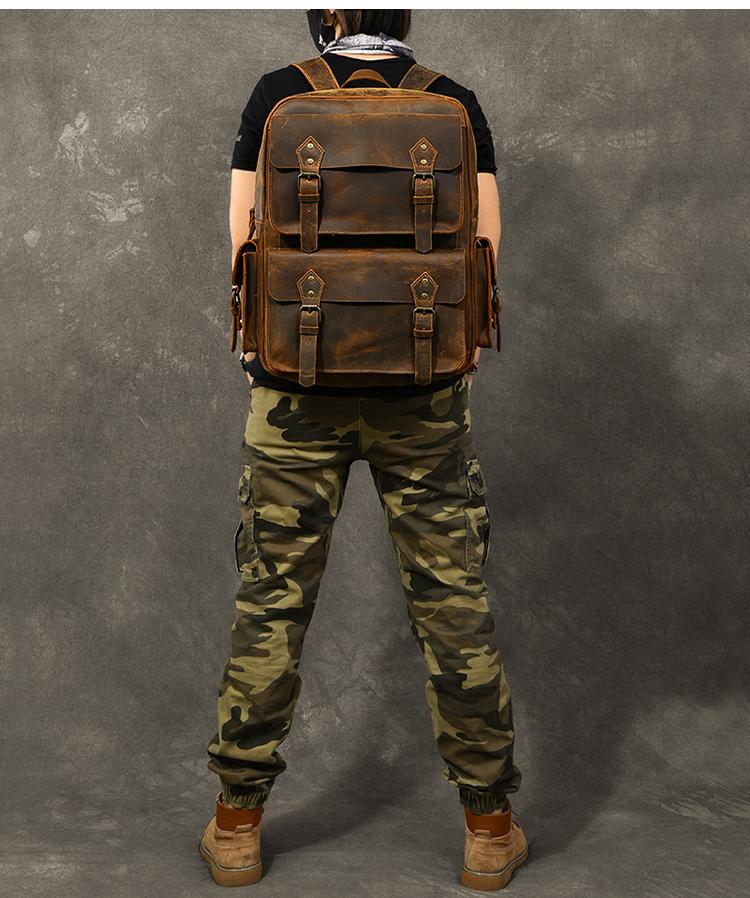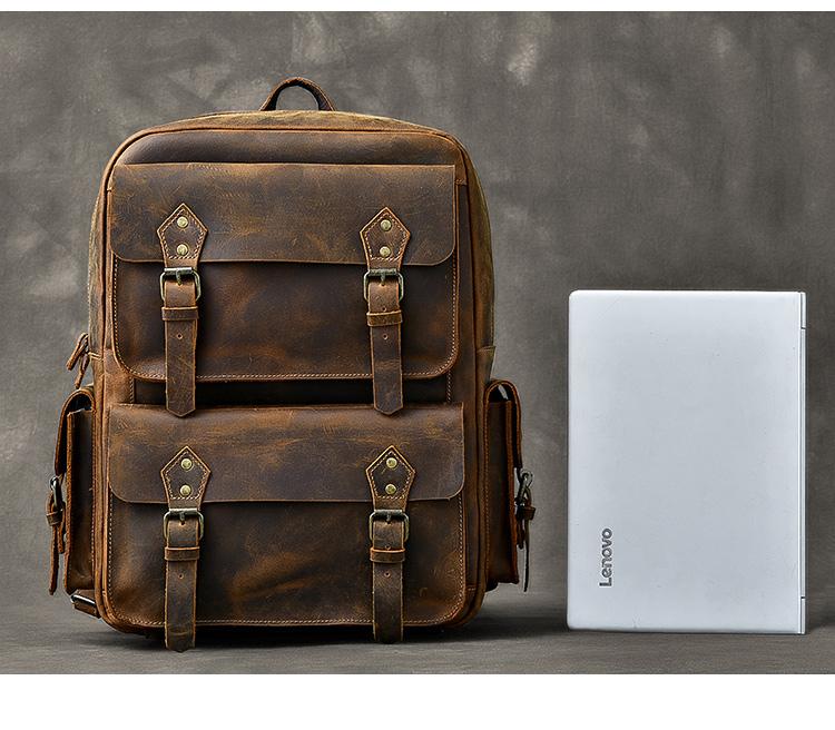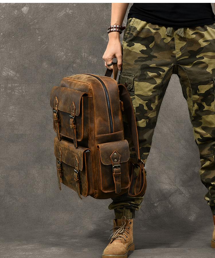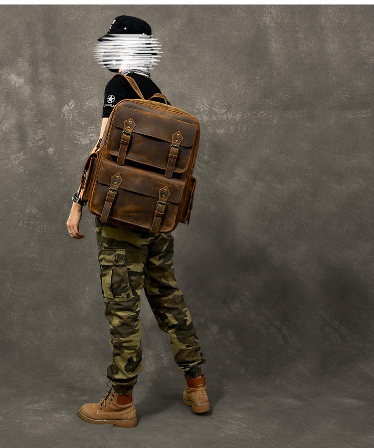 Design: Cool Canvas Leather Mens 15" Retro Brown Hiking Backpack Travel Backpack College Backpack for Men