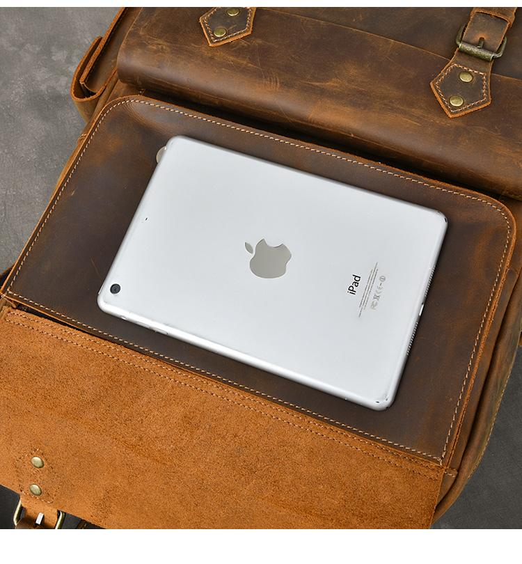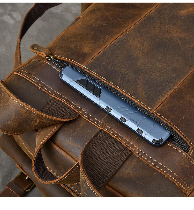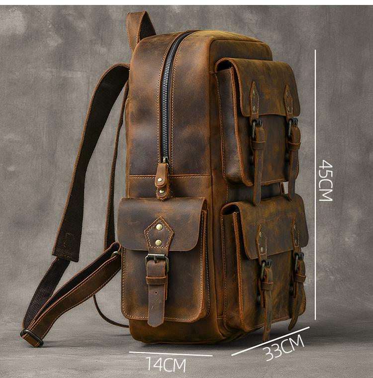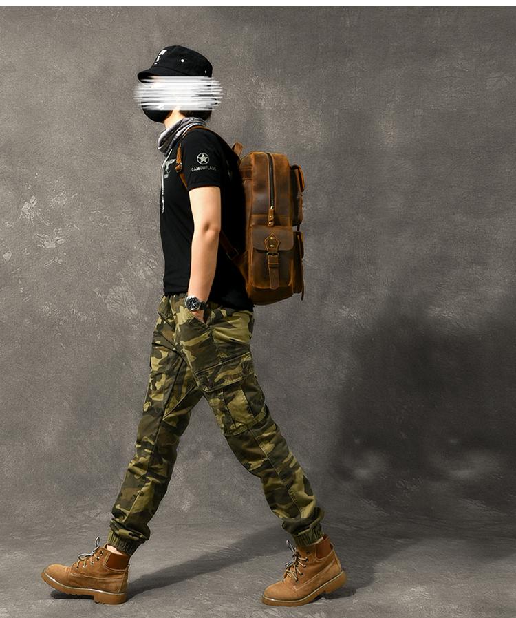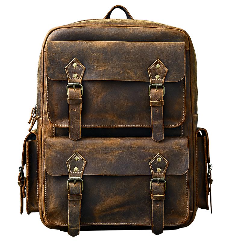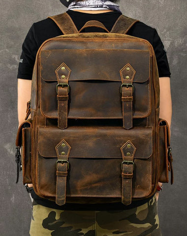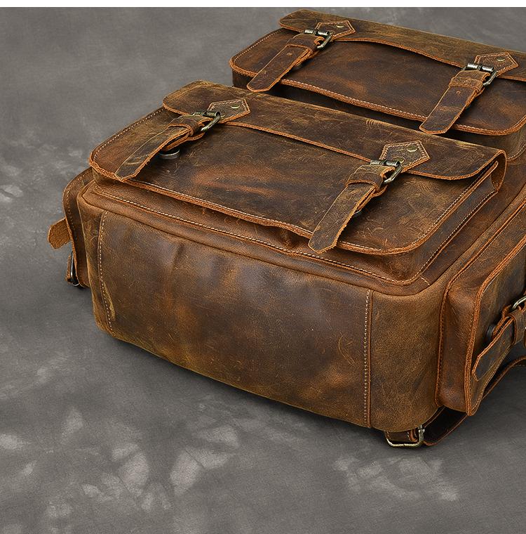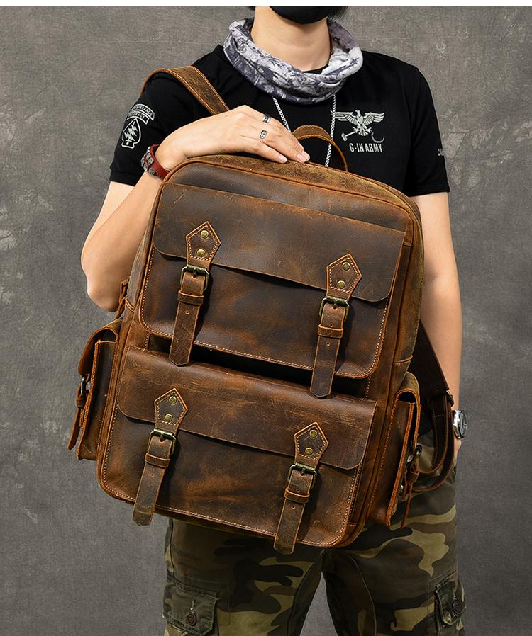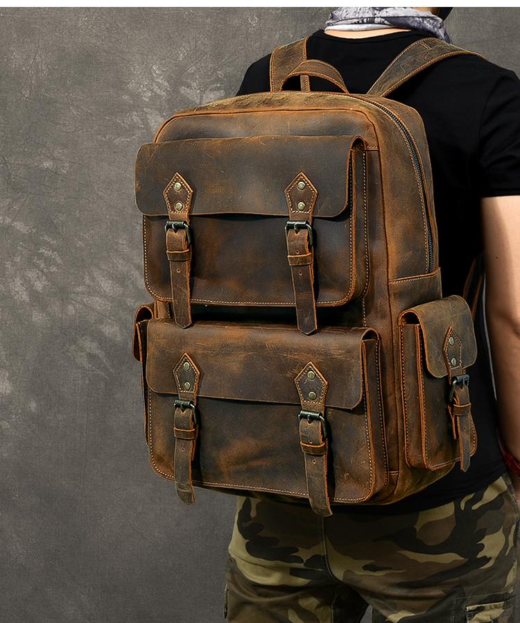 Design: Cool Canvas Leather Mens 15" Retro Brown Hiking Backpack Travel Backpack College Backpack for Men