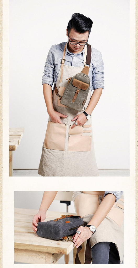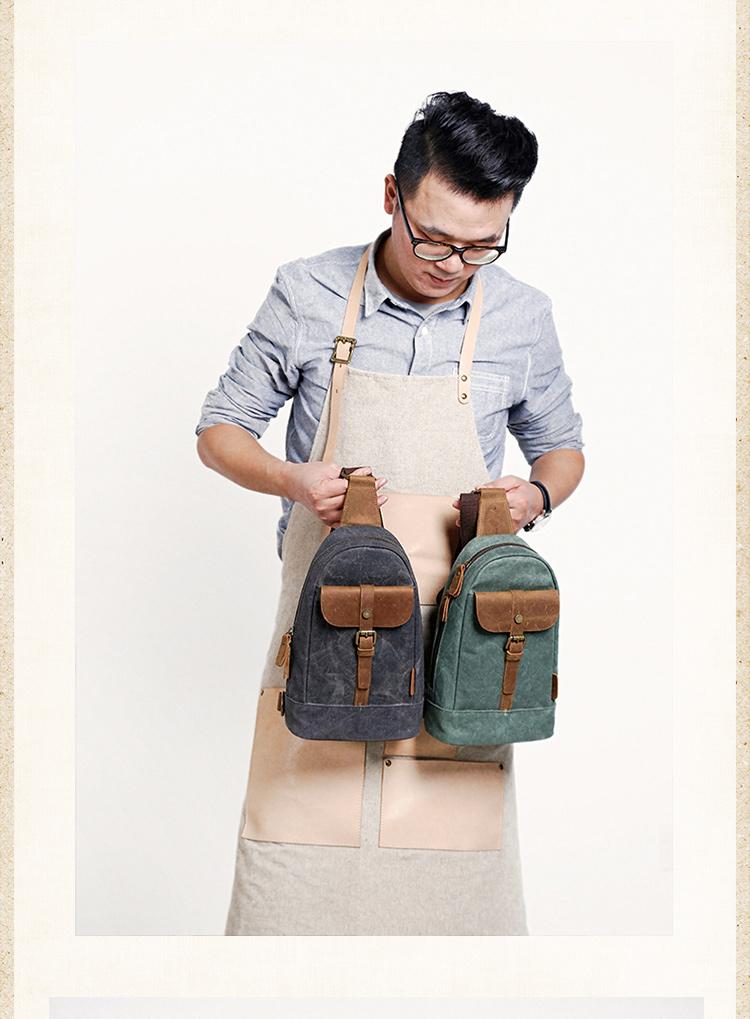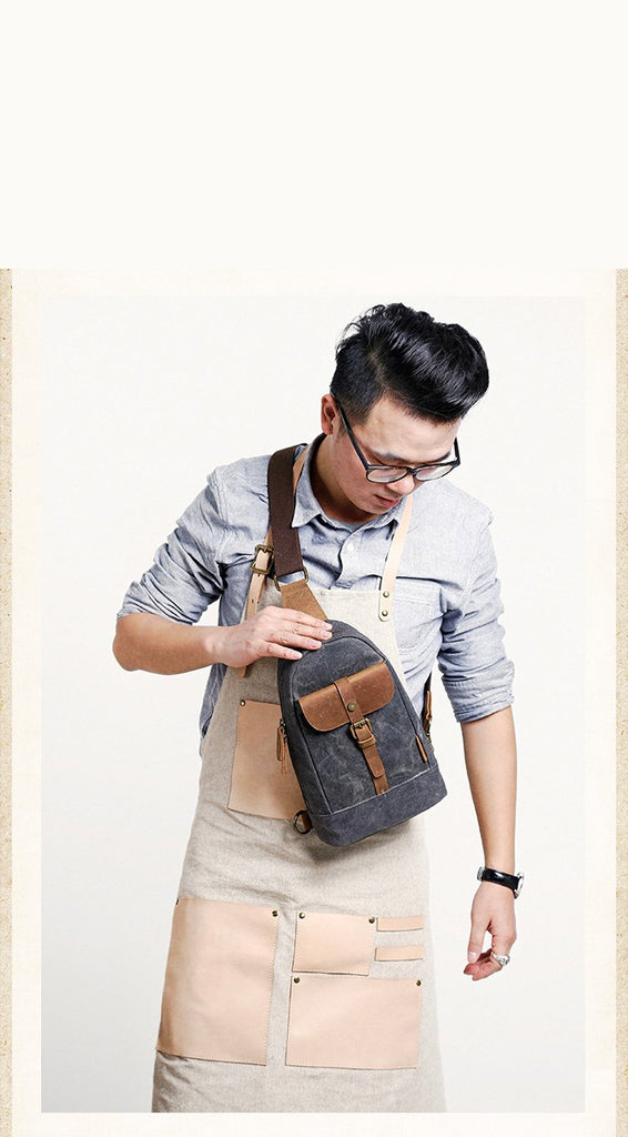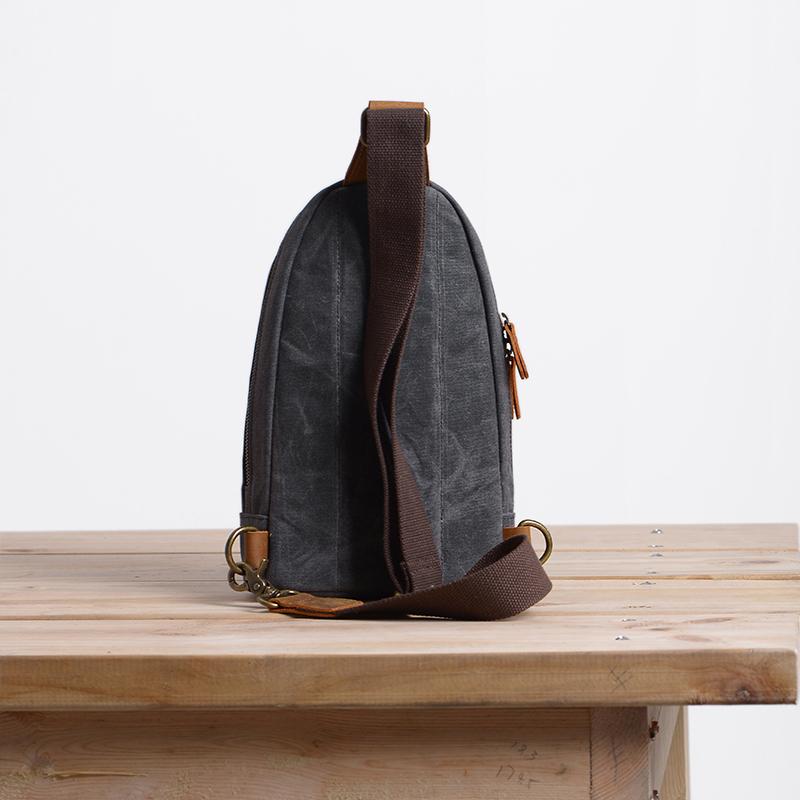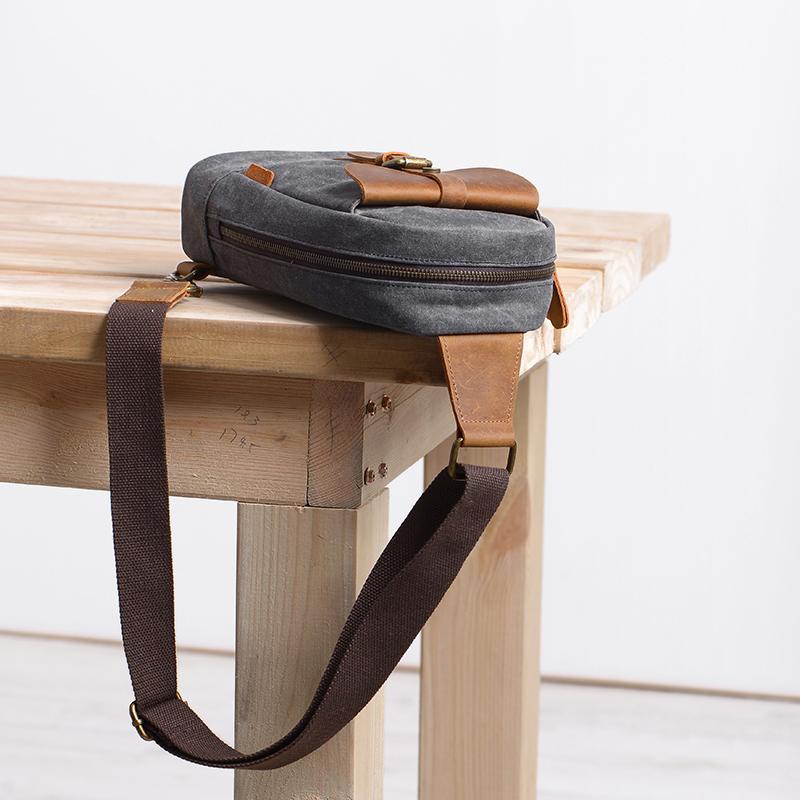 Design: Cool Canvas Leather Mens 8 inches Black Chest Bag Shoulder Bag Crossbody Bag For Men