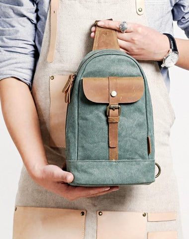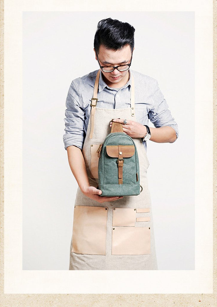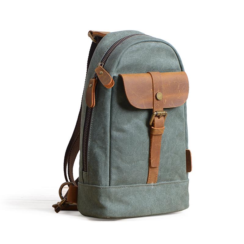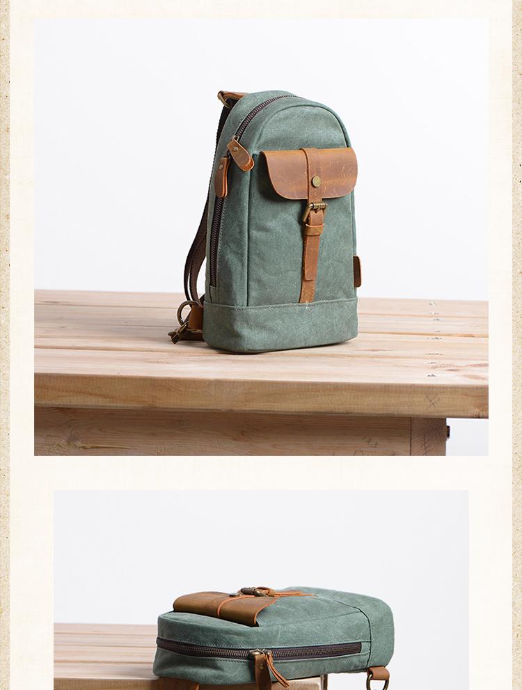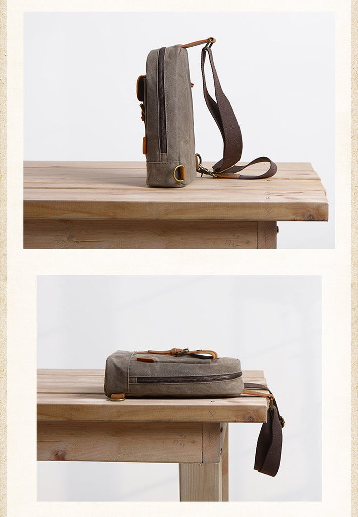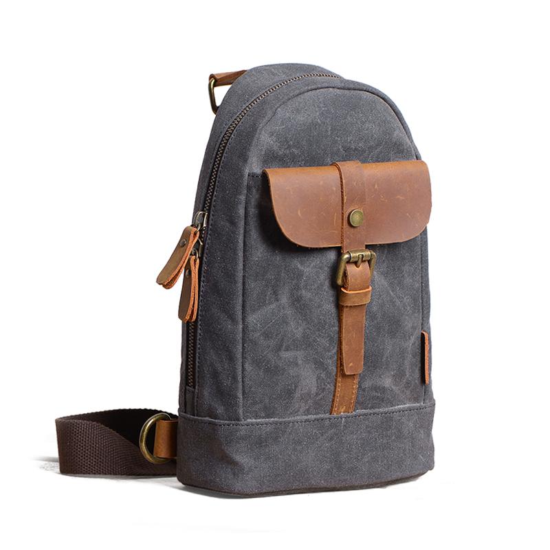 Design: Cool Canvas Leather Mens 8 inches Black Chest Bag Shoulder Bag Crossbody Bag For Men
