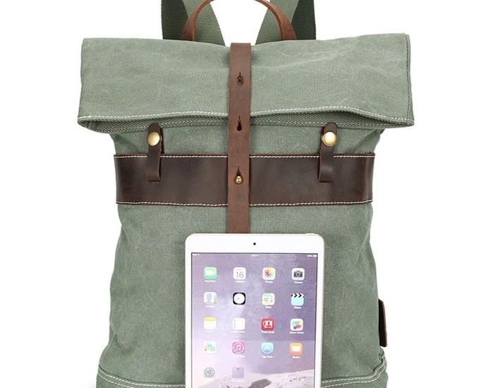 Cool Waxed Canvas Leather Mens Backpack Canvas Travel Backpack Canvas School Backpack for Men