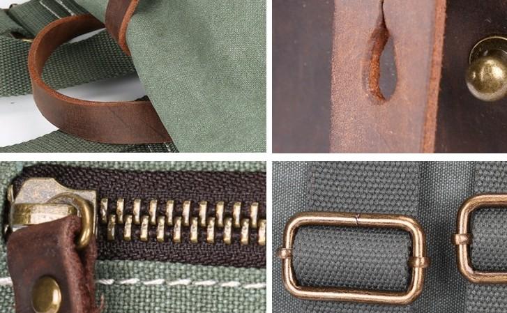 Design: Cool Canvas Leather Mens Backpack Canvas Travel Backpack Canvas School Backpack for Men