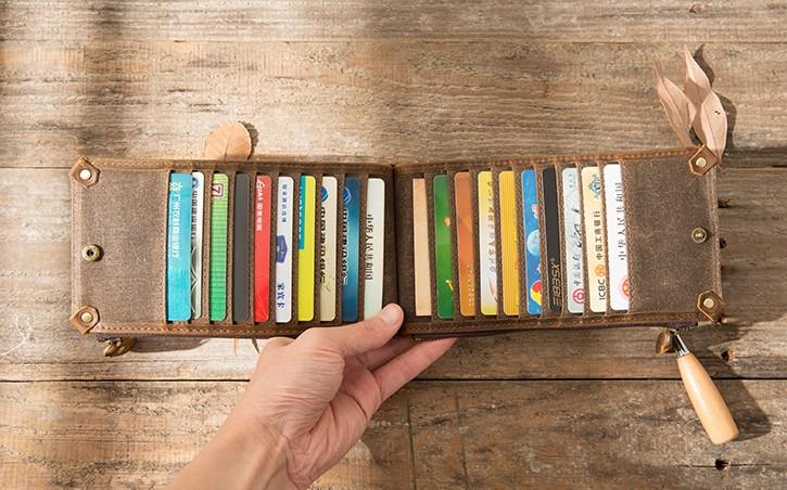 Cool Canvas Leather Mens Bifold Long Cards Wallet Long Wallet for Men