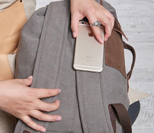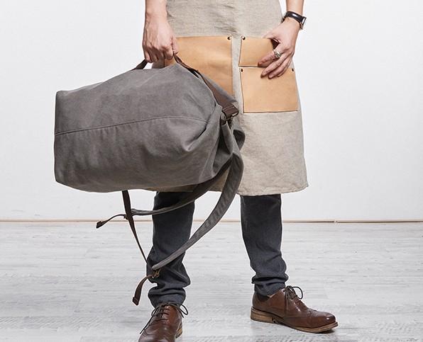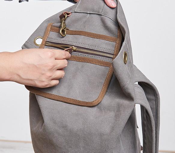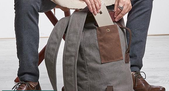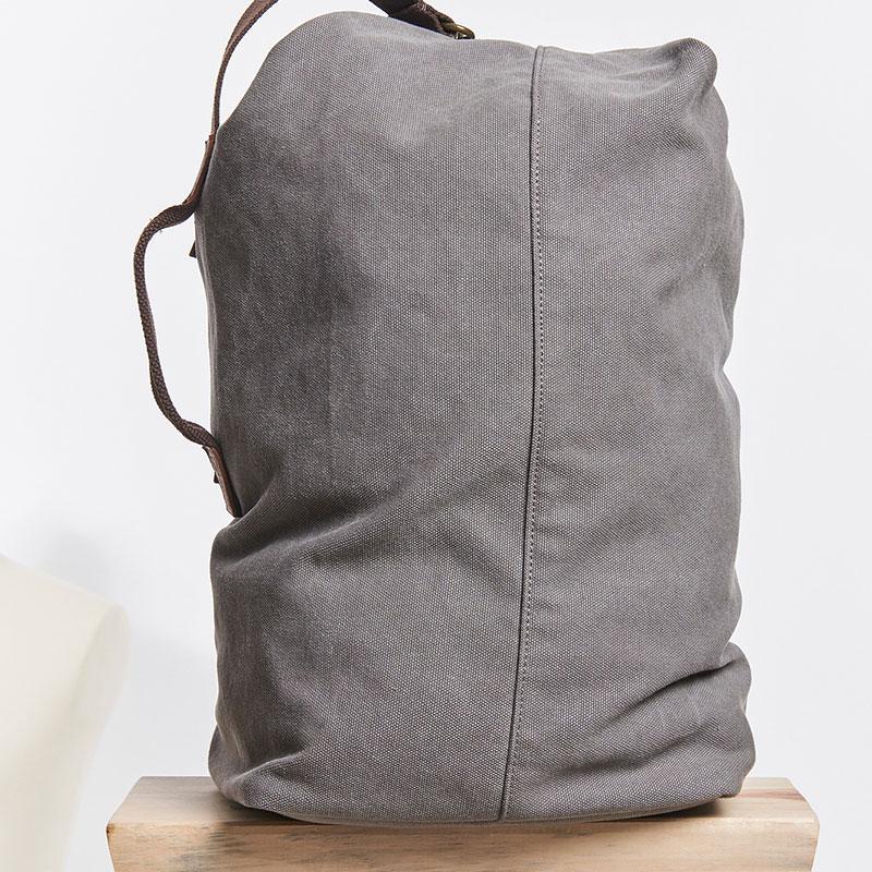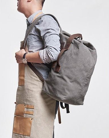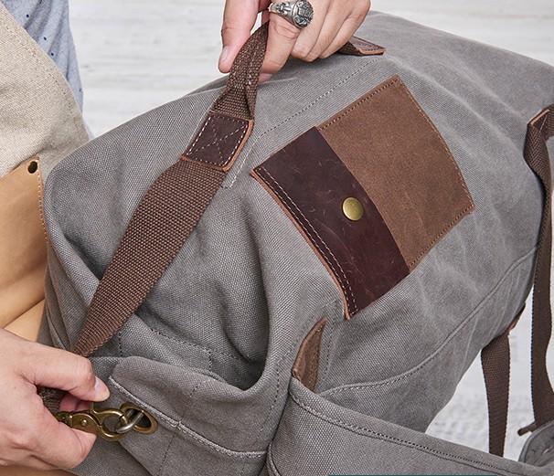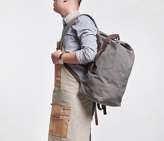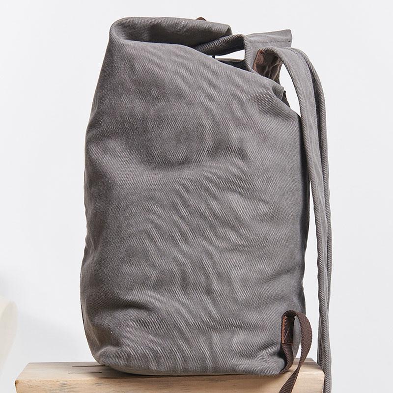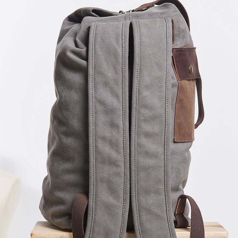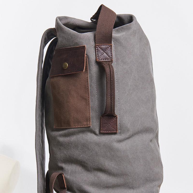 Design: Cool Canvas Leather Mens Bucket Backpack Canvas Travel Bag Canvas Barrel Bag for Men