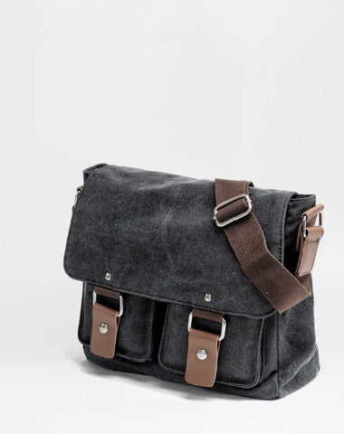 Design: Cool Canvas Leather Mens Small Black Side Bag Messenger Bag Shoulder Bag For Men