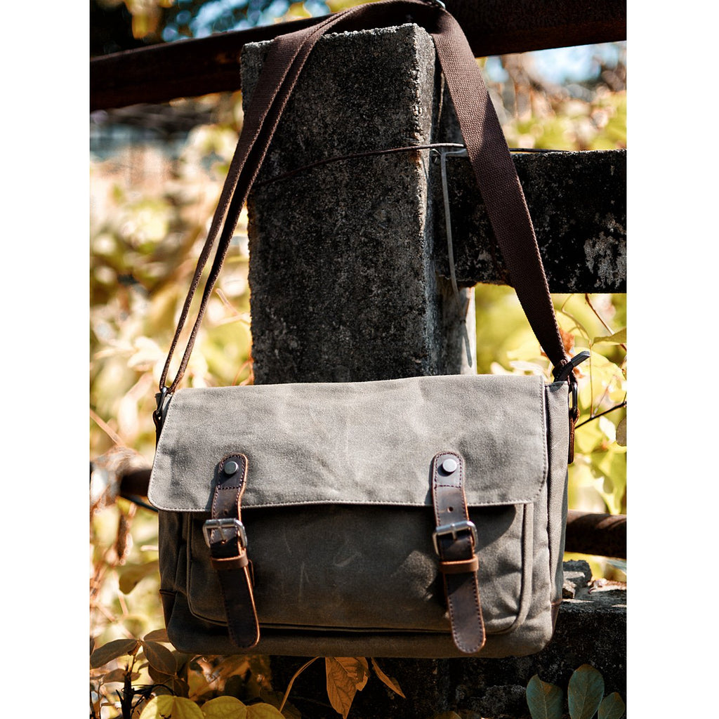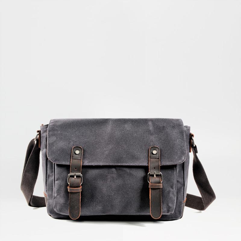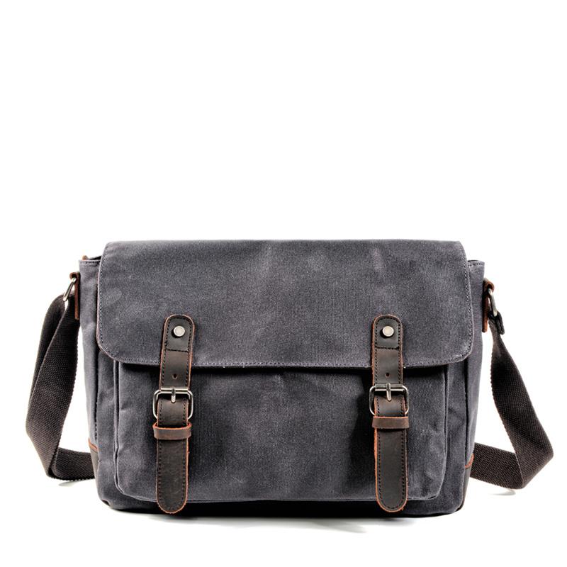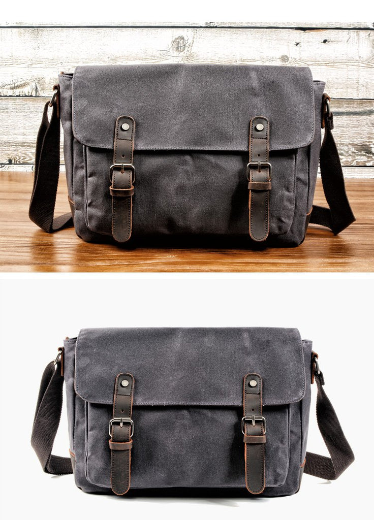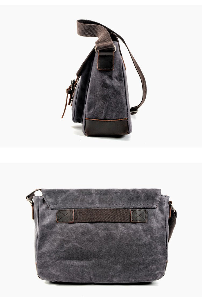 Design: Cool Waxed Canvas Leather Mens Gray Casual Waterproof Side Bag 12'' Messenger Bag For Men
