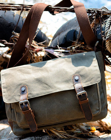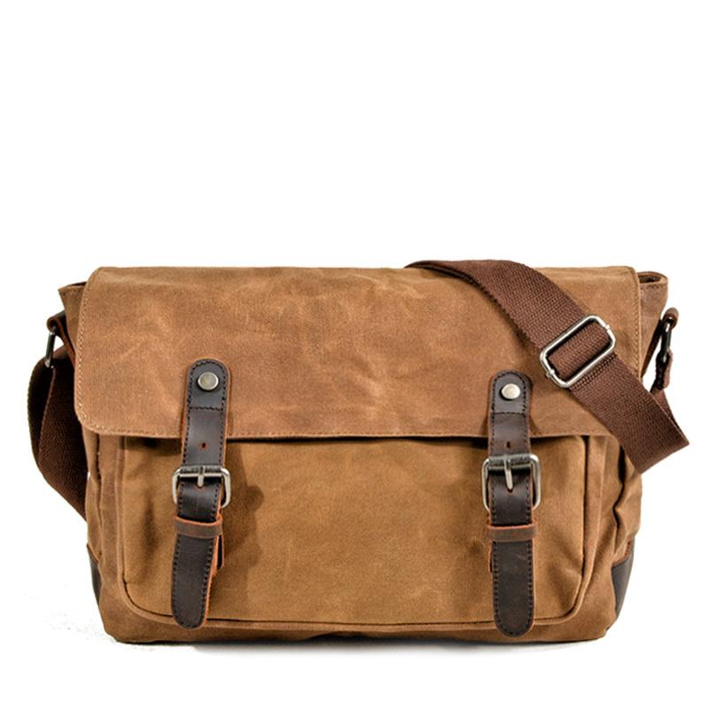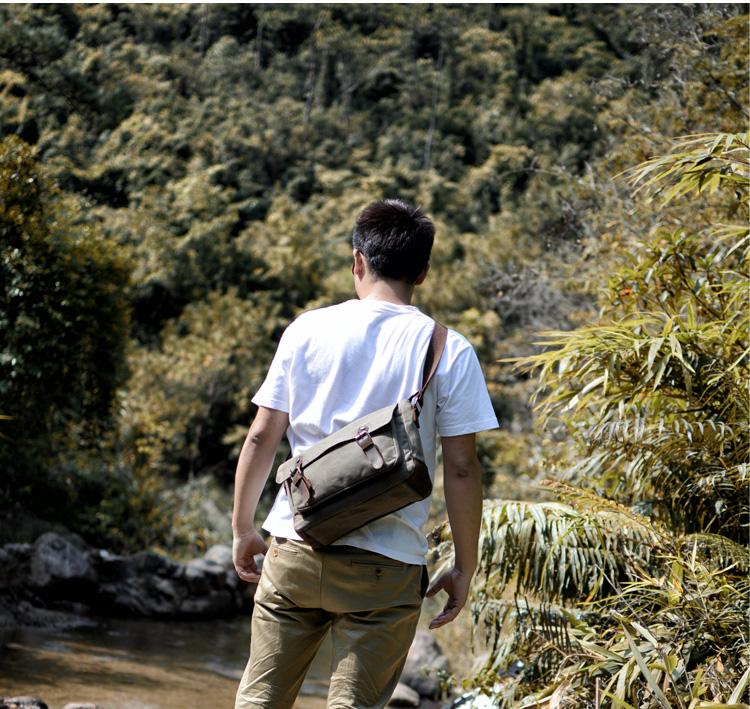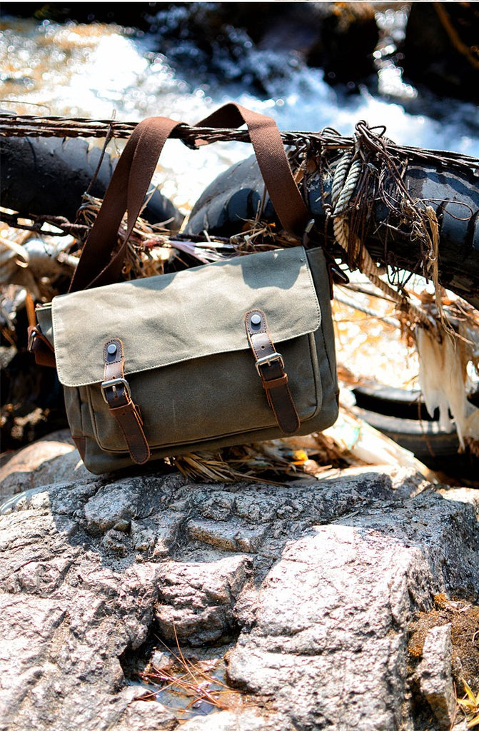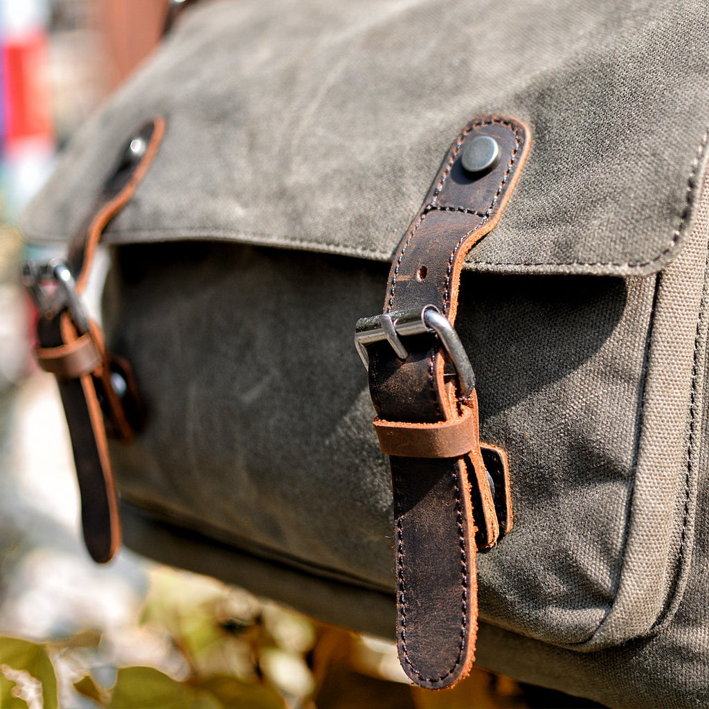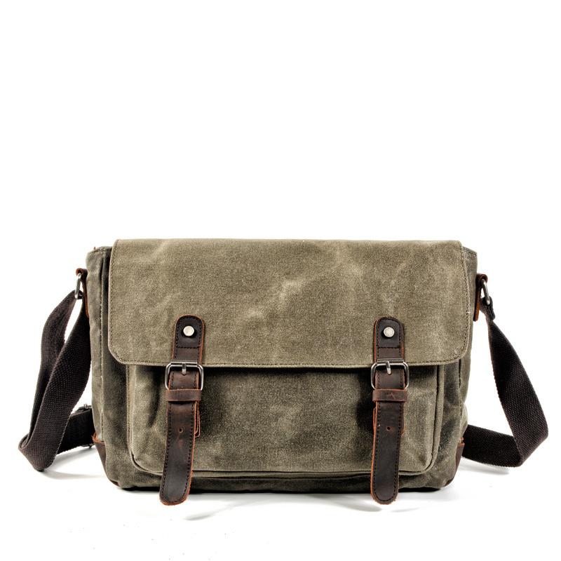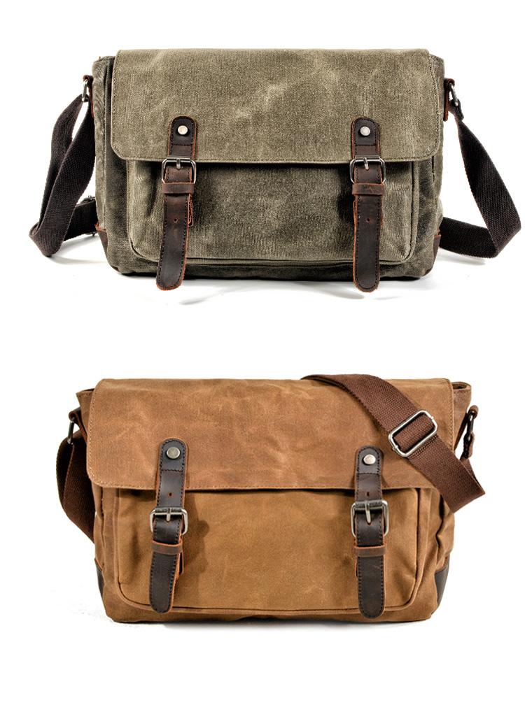 Design: Cool Waxed Canvas Leather Mens Gray Casual Waterproof Side Bag 12'' Messenger Bag For Men