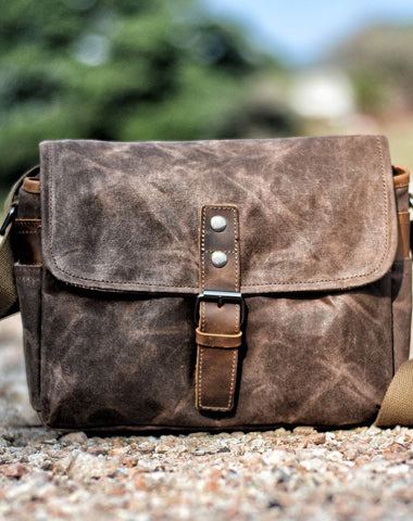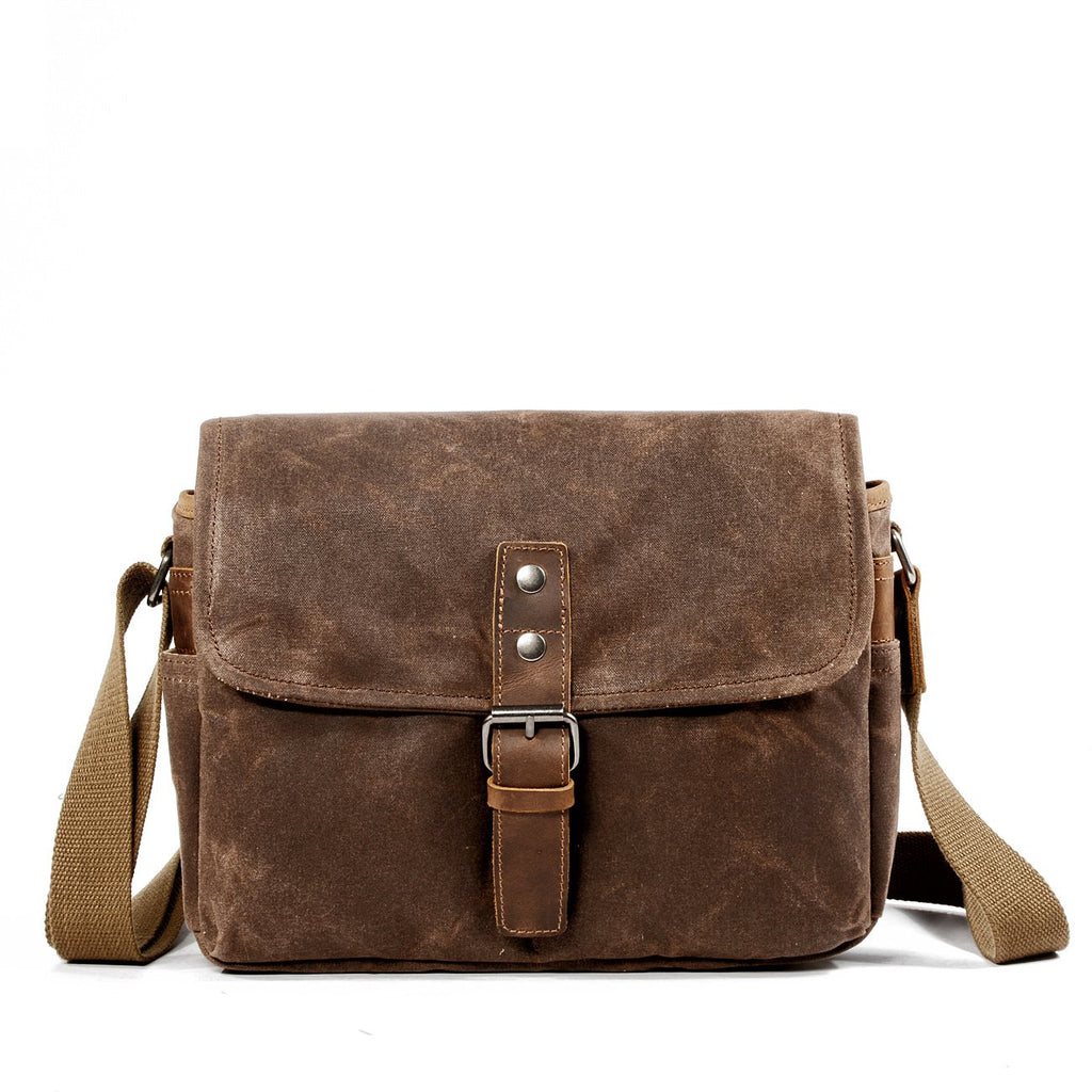 Cool Waxed Canvas Leather Mens Casual Waterproof Messenger Bag Camera Bag Side Bag For Men