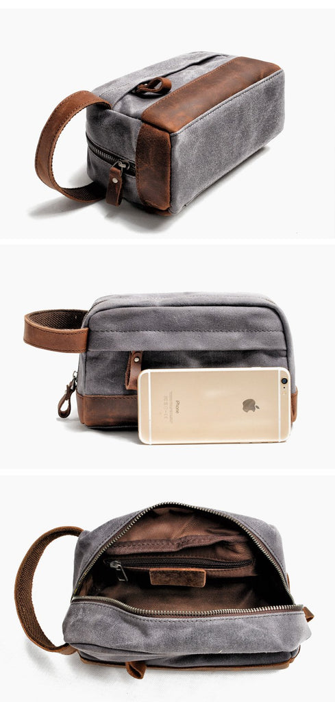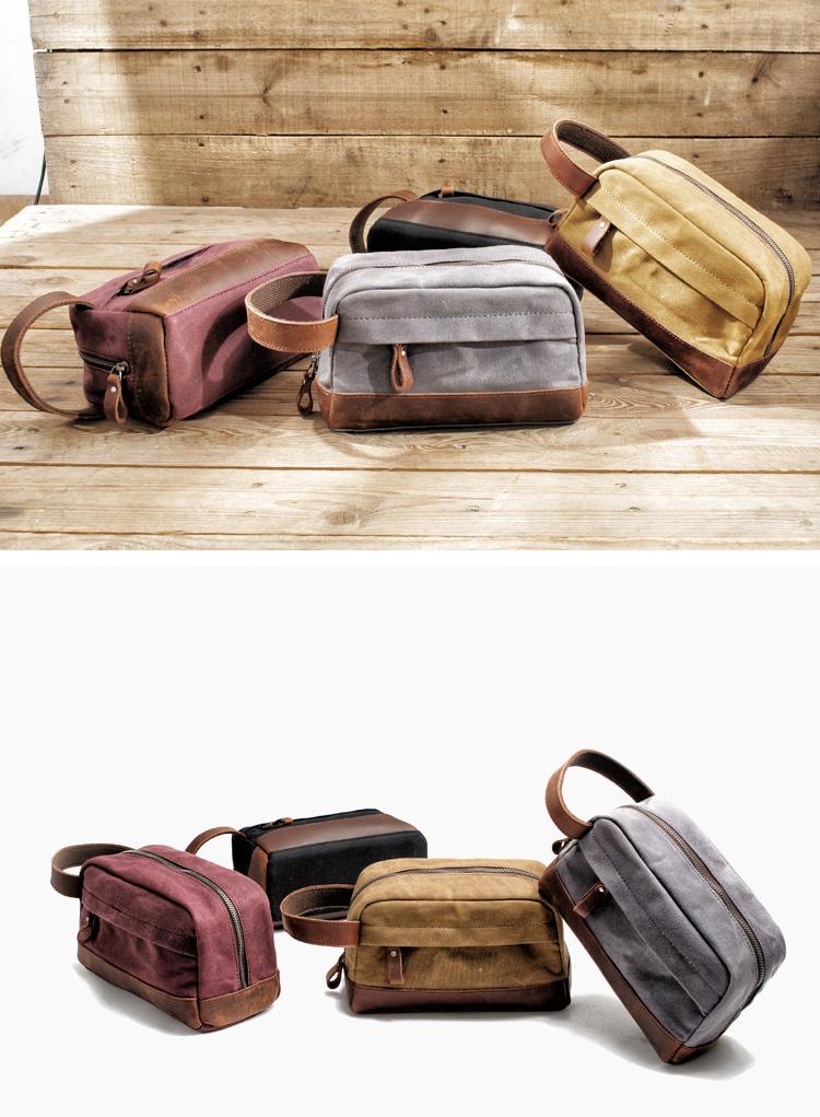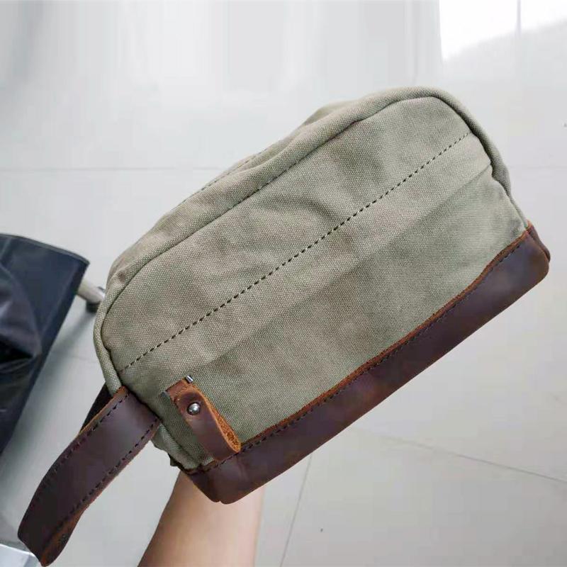 Design: Cool Canvas Leather Mens Clutch Bag Handbag Storage Bag Wash Bag For Men