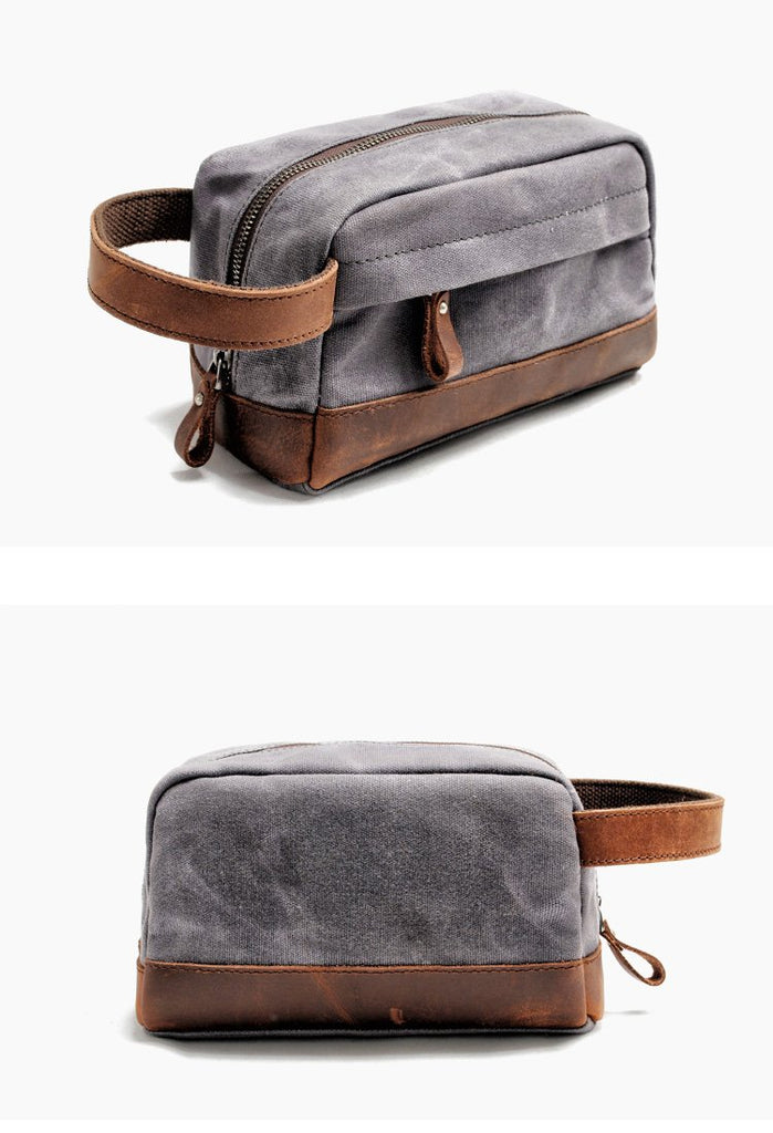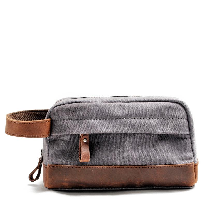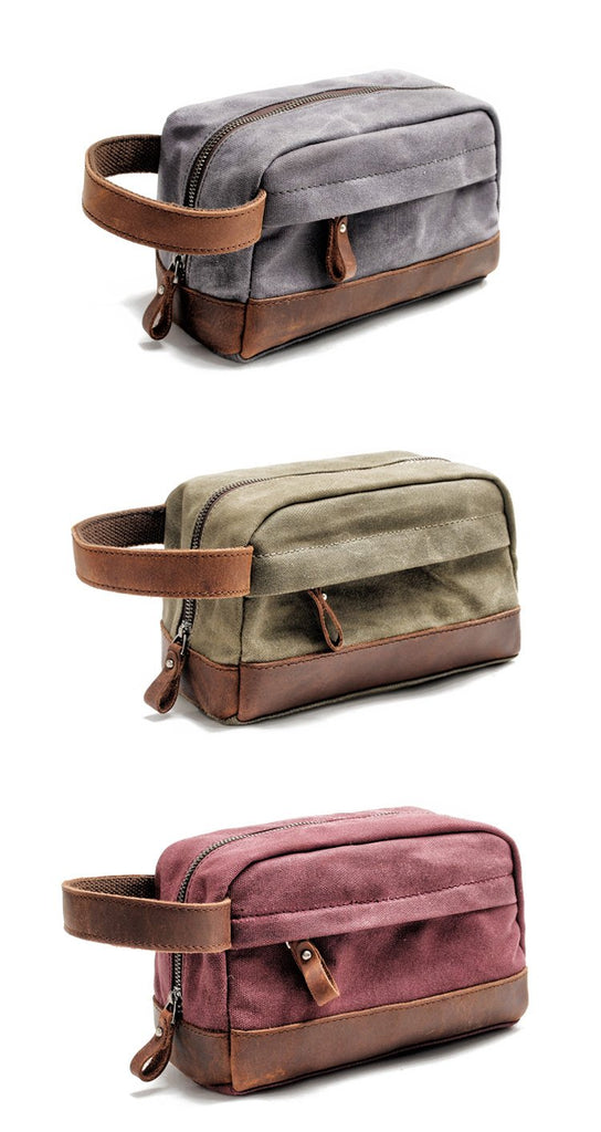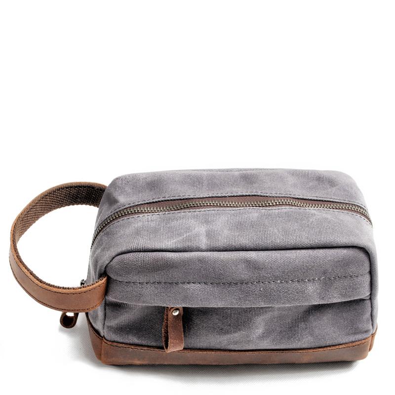 Style: Cool Canvas Leather Mens Clutch Bag Handbag Storage Bag Wash Bag For Men