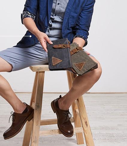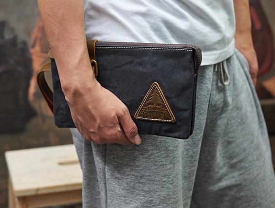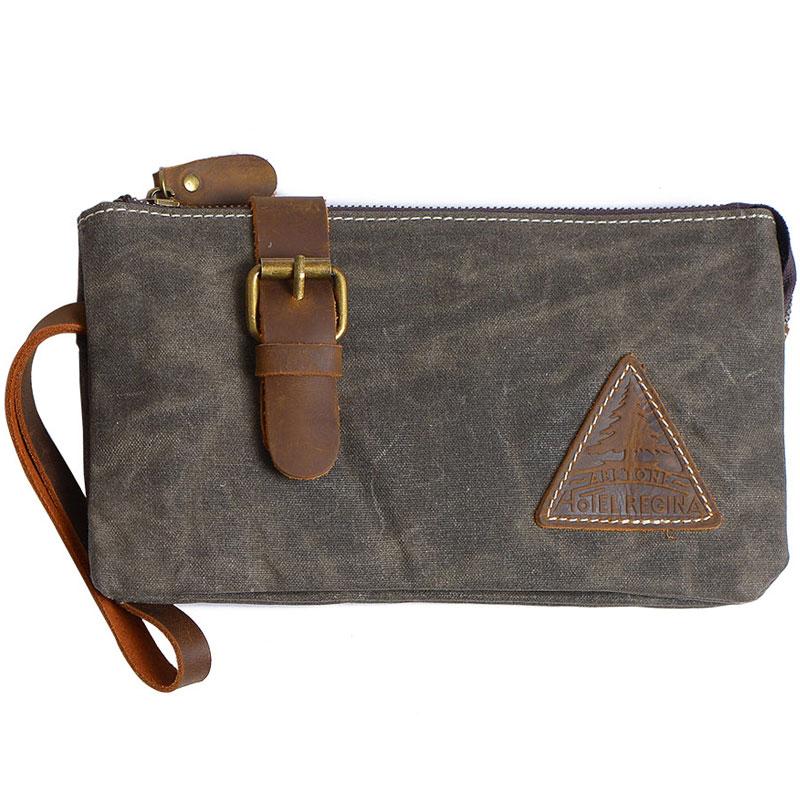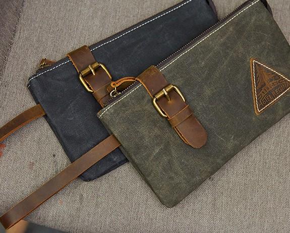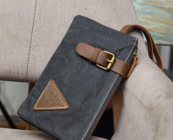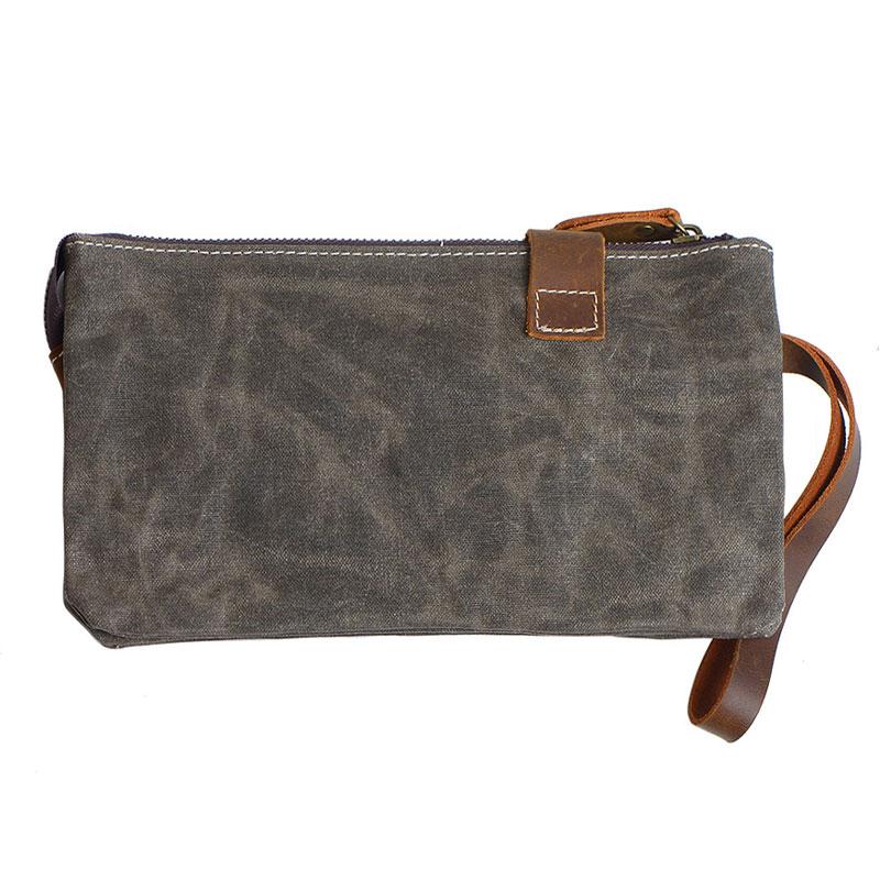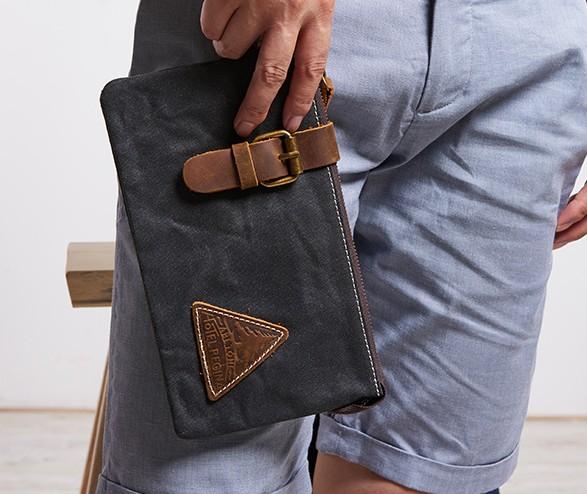 Style: Cool Canvas Leather Mens Clutch Wallet Zipper Wristlet Bag Purse for Men