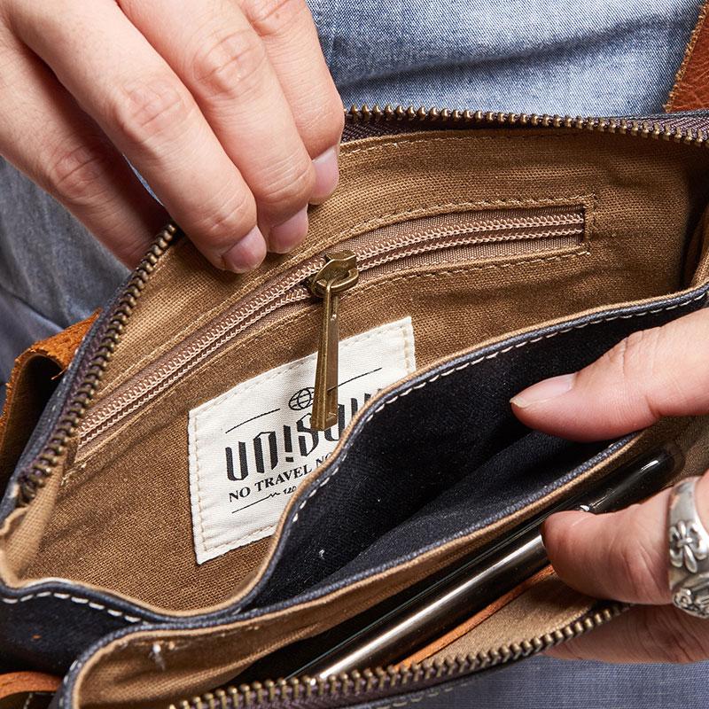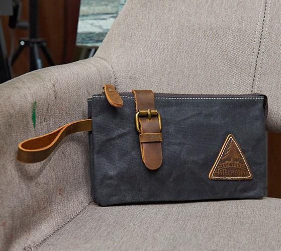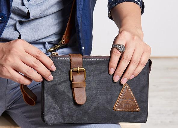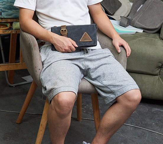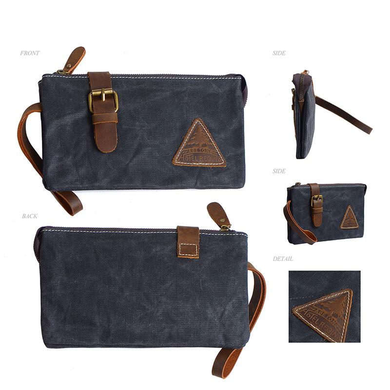 Design: Cool Canvas Leather Mens Clutch Wallet Zipper Wristlet Bag Purse for Men