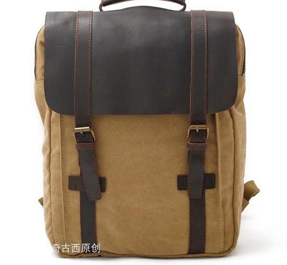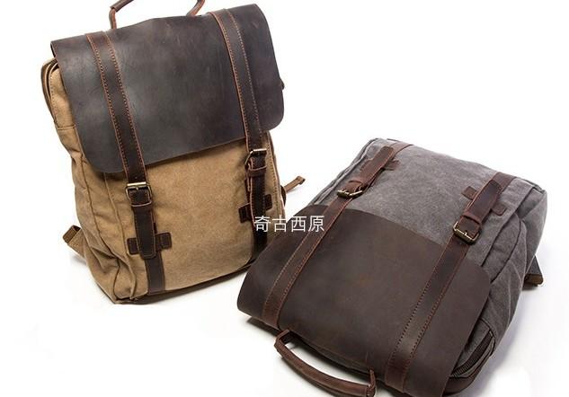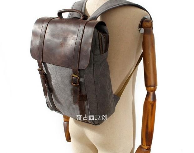 Design: Leather Canvas Mens Cool Backpack Canvas Travel Bag Canvas School Bag for Men