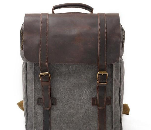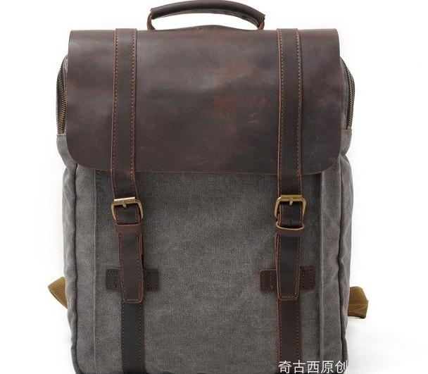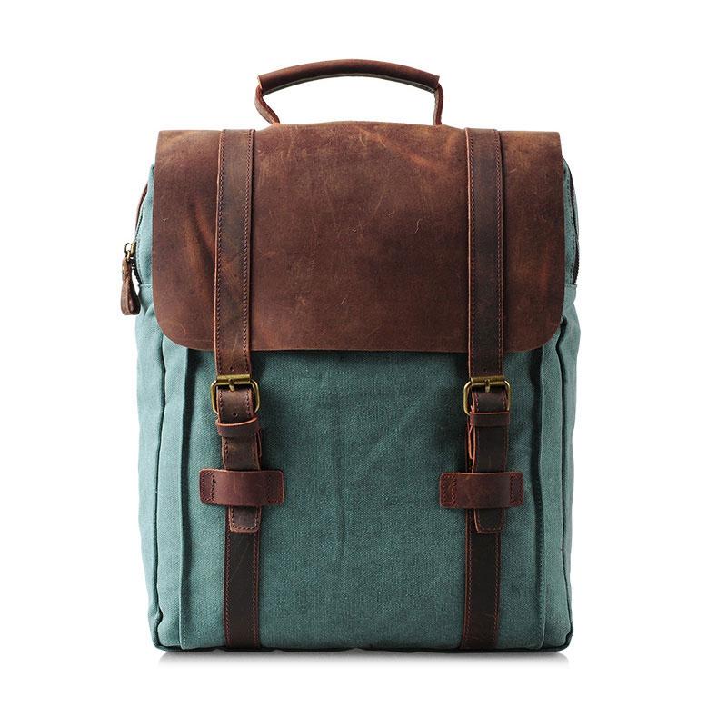 Style: Leather Canvas Mens Cool Backpack Canvas Travel Bag Canvas School Bag for Men