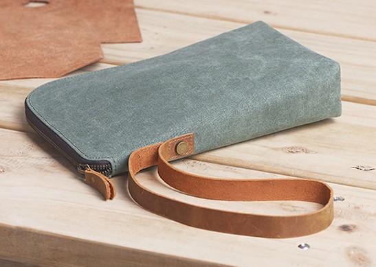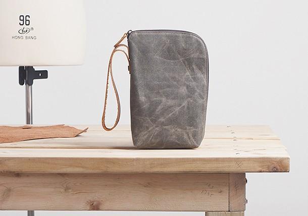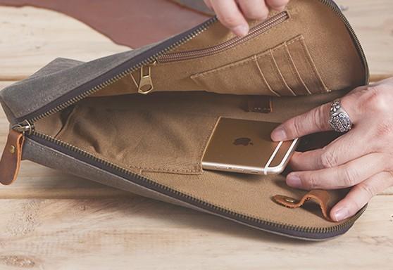 Design: Cool Canvas Leather Mens Large Clutch Wallet Zipper Wristlet Bag Purse for Men