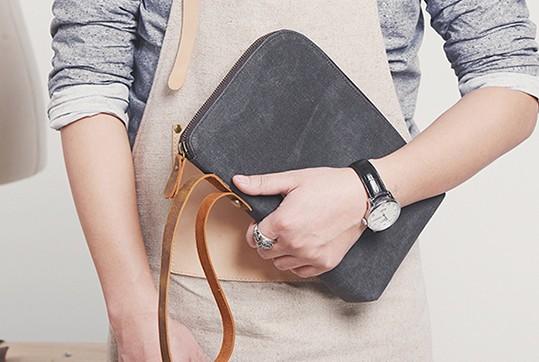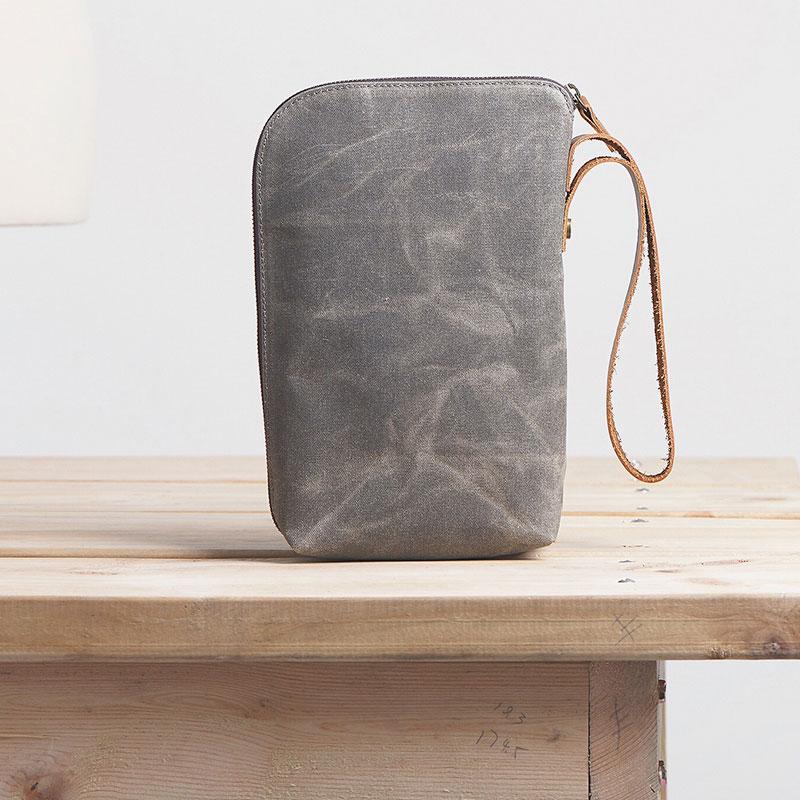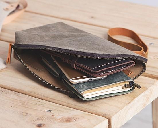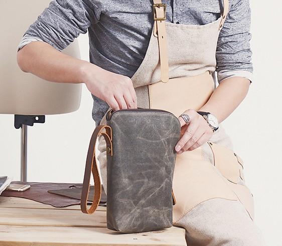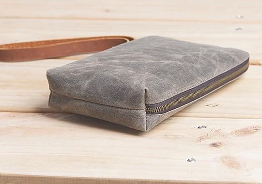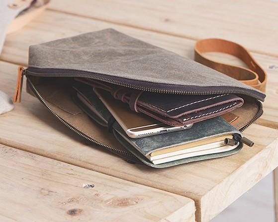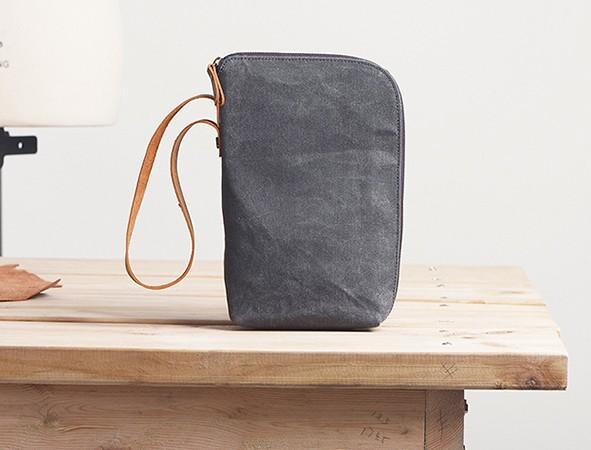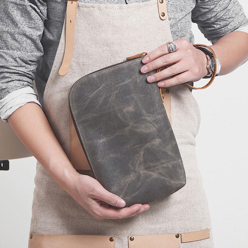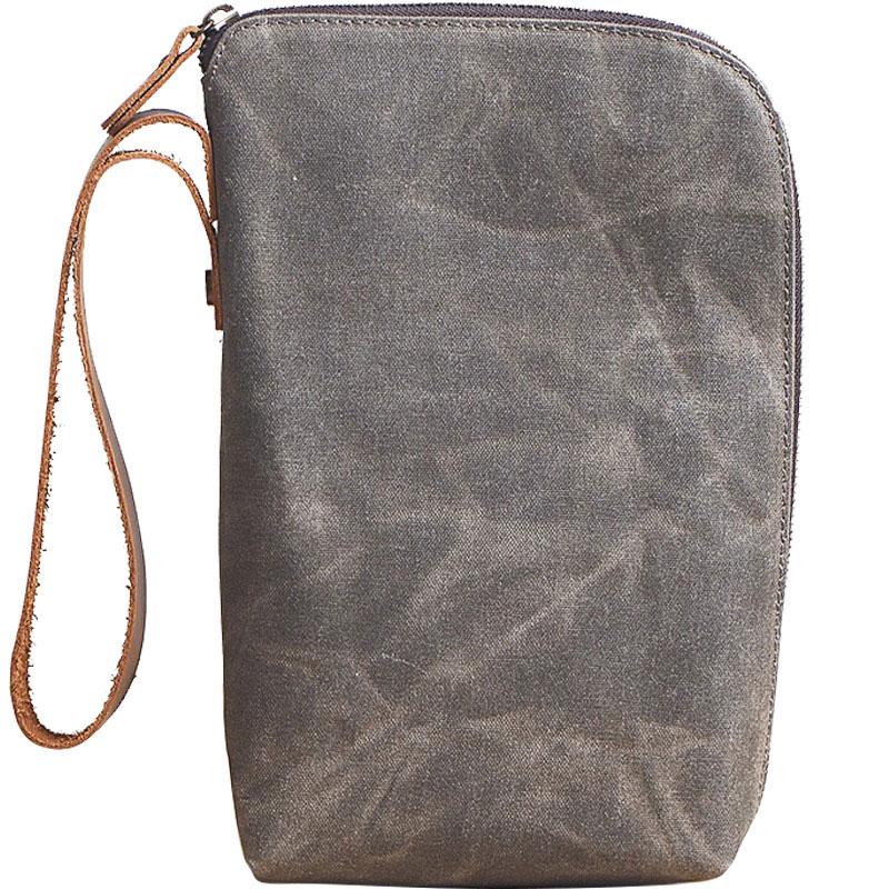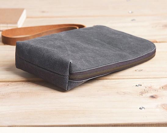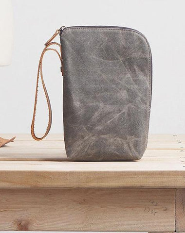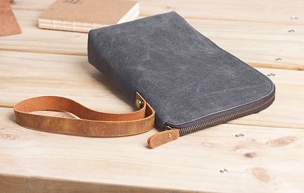 Style: Cool Canvas Leather Mens Large Clutch Wallet Zipper Wristlet Bag Purse for Men