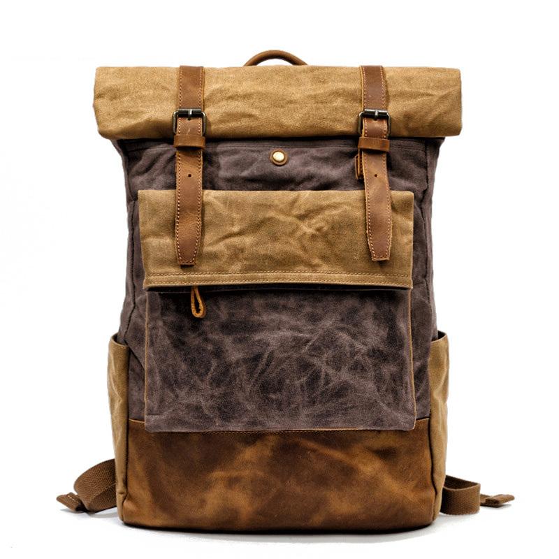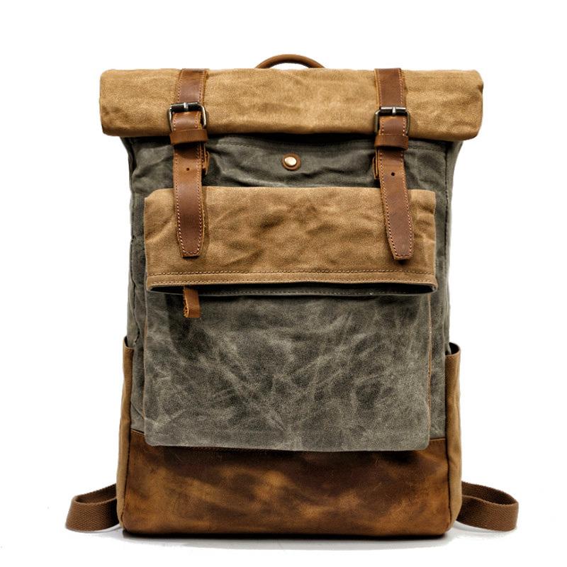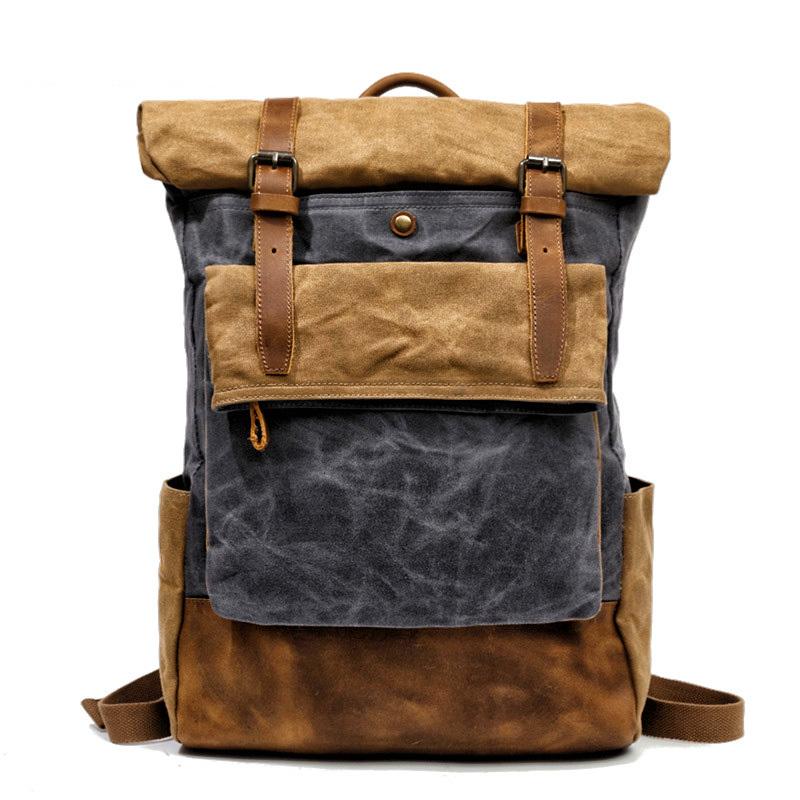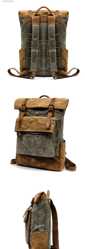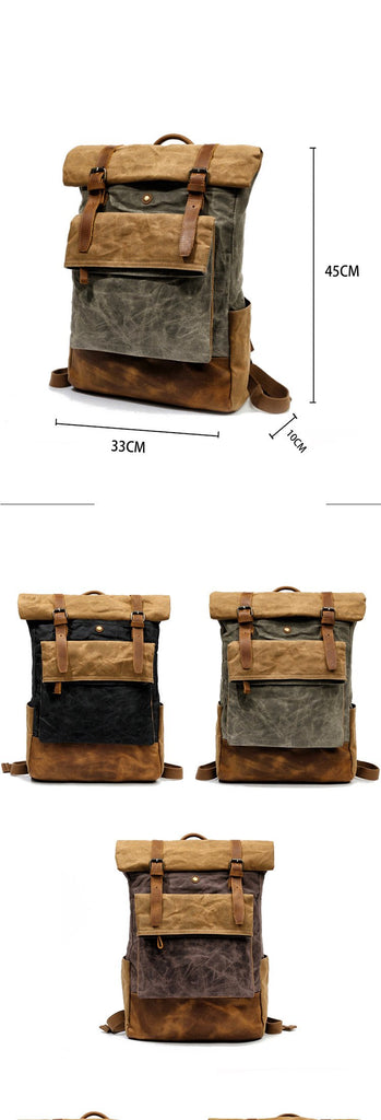 Style: Cool Canvas Leather Mens Large Waterproof Travel Backpacks Computer Hiking Backpack for Men