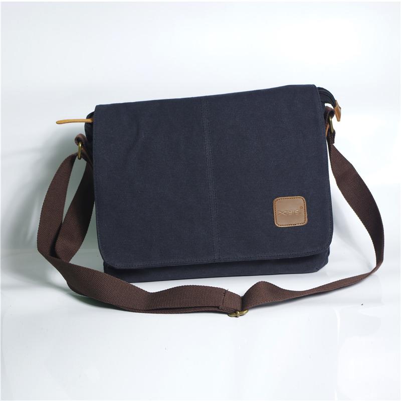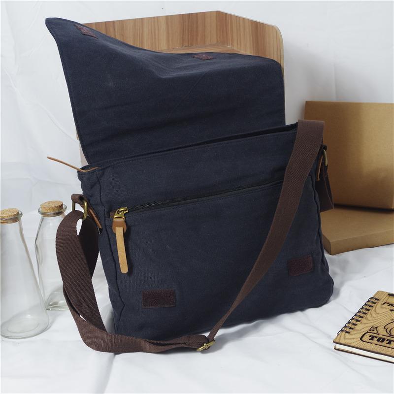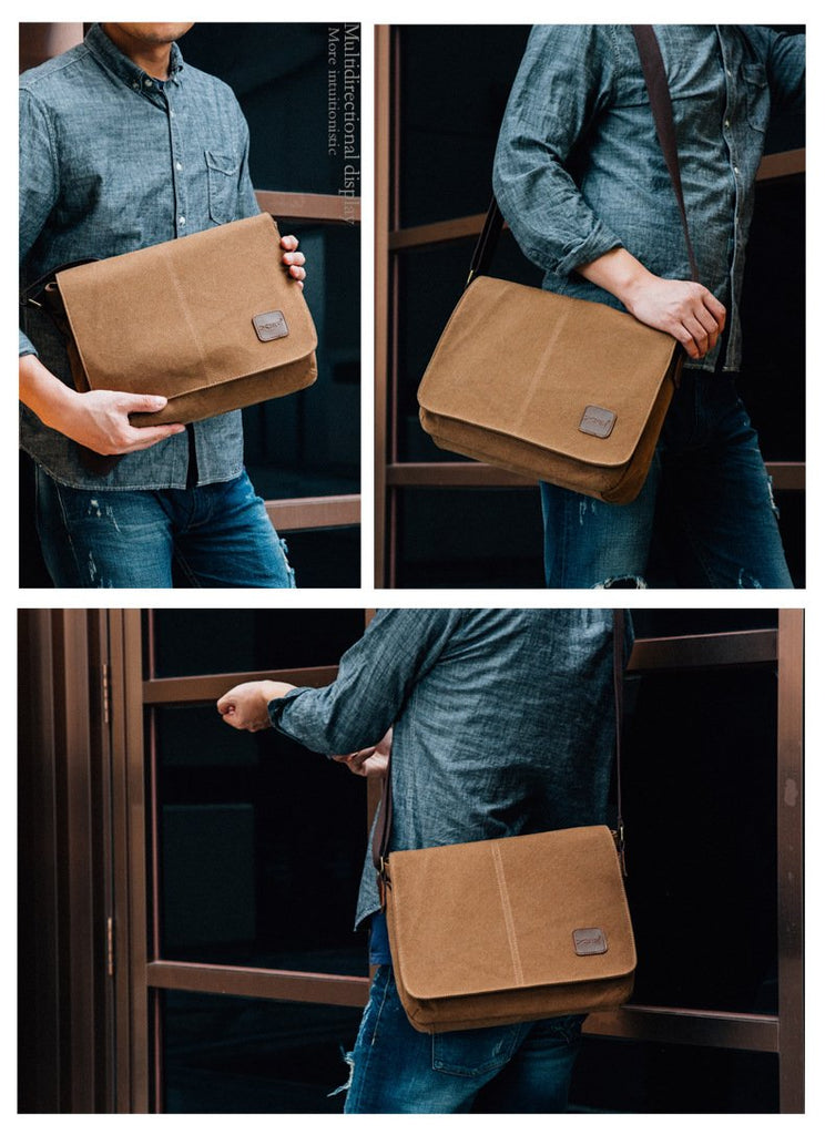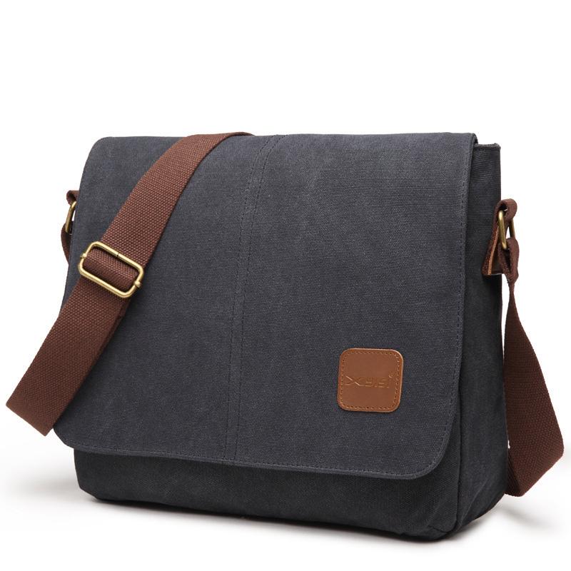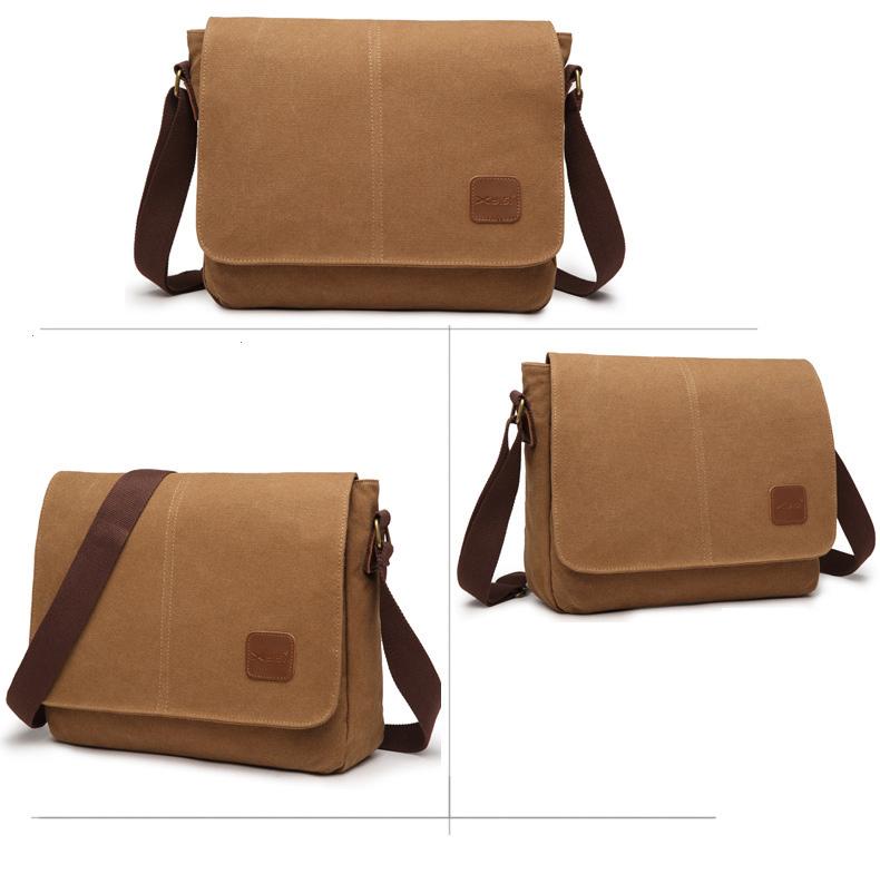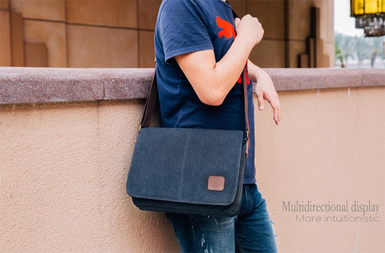Design: Cool Canvas Leather Mens Retro Side Bag Shoulder Bag College Bag Messenger Bag for Men