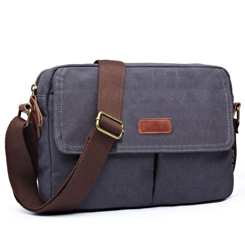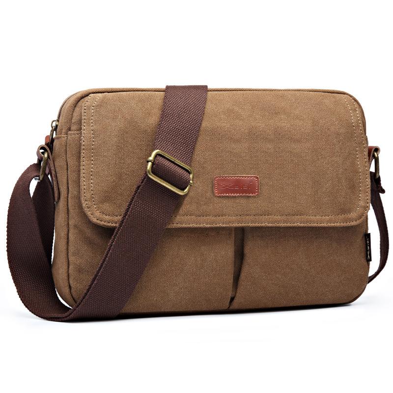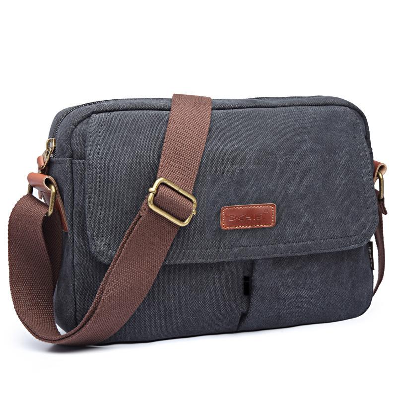 Style: Cool Canvas Leather Mens Retro Tablet Bag Shoulder Bag College Bag Messenger Bag for Men