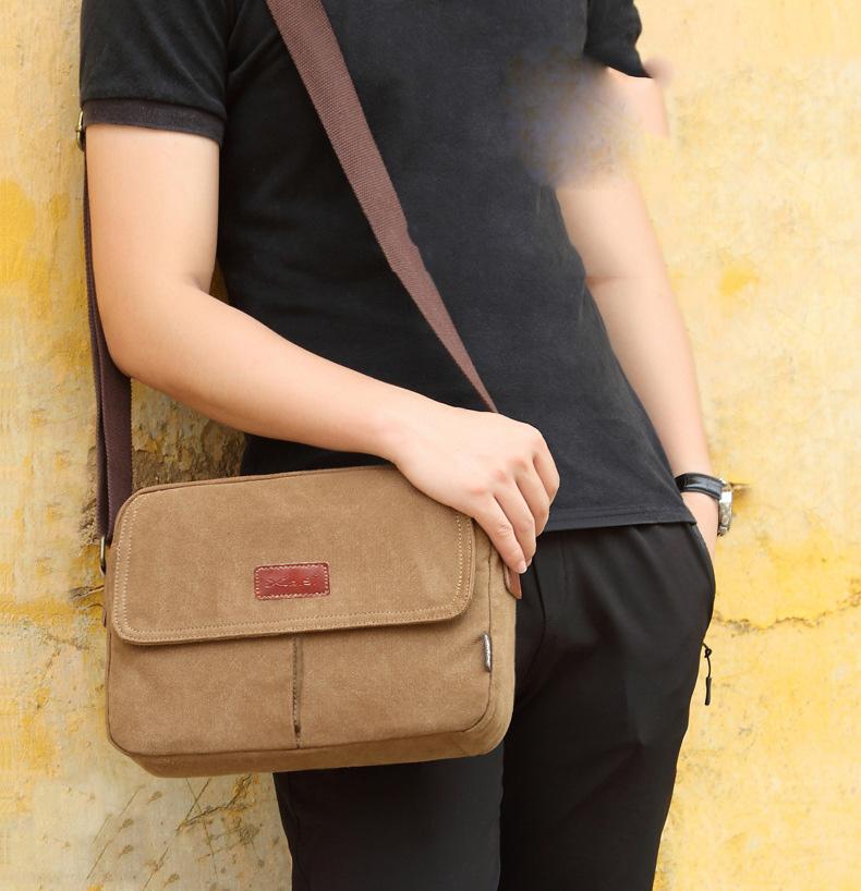 Design: Cool Canvas Leather Mens Retro Tablet Bag Shoulder Bag College Bag Messenger Bag for Men