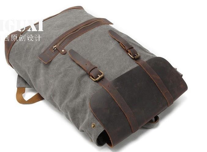 Design: Cool Canvas Leather Mens School Backpack Laptop Backpack Canvas Travel Backpack Canvas for Men